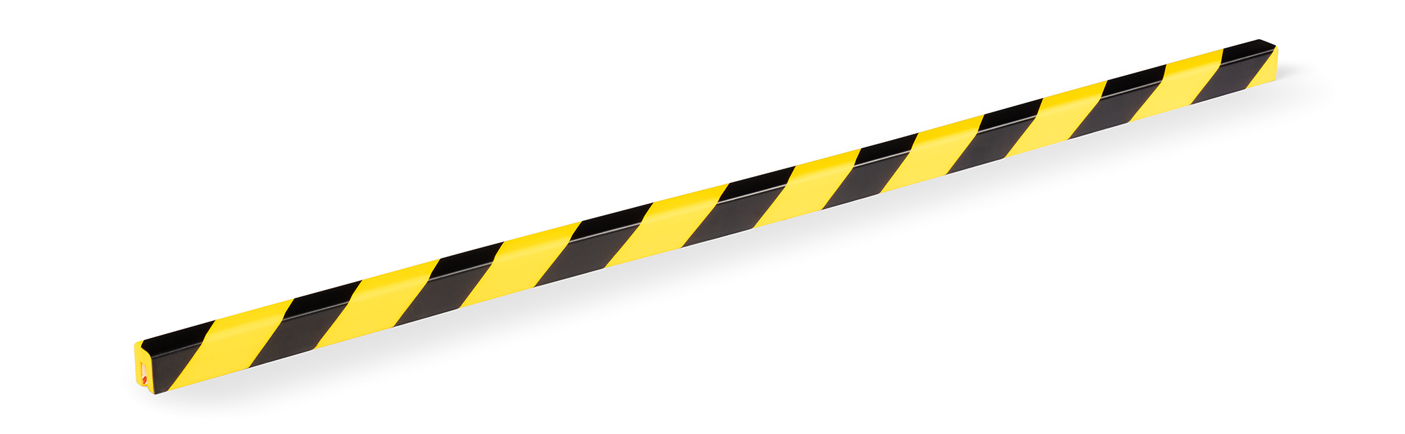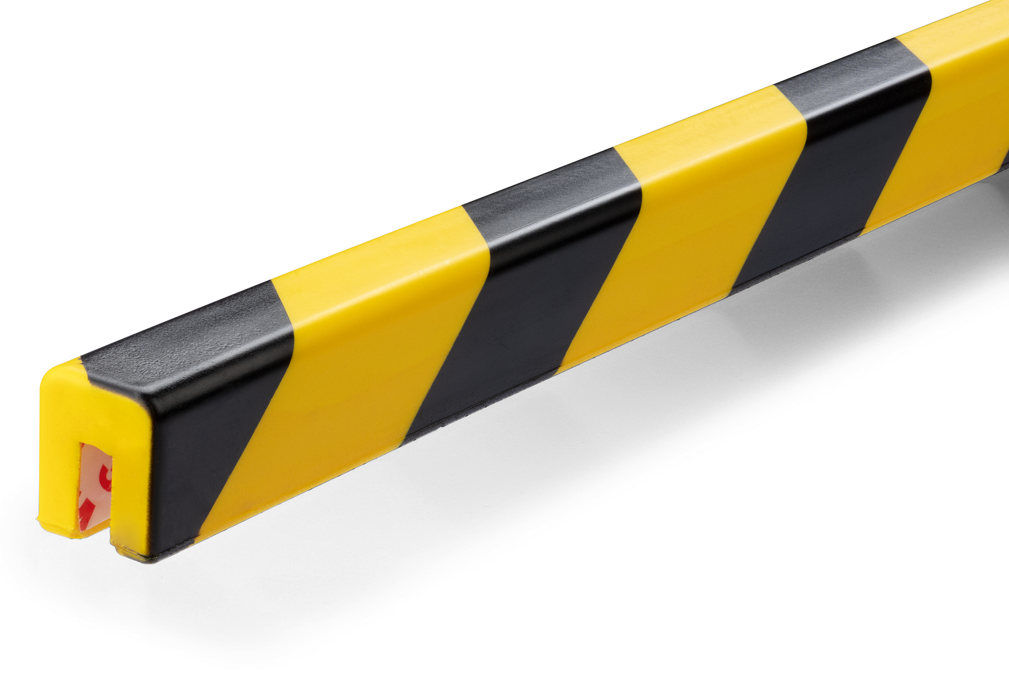 Kantbeskytter e8Selvklæbende beskyttelsesprofil til kanter med stødabsorberende effekt. Sort/gule striber advarer og henleder opmærksomheden på mulige risici.
