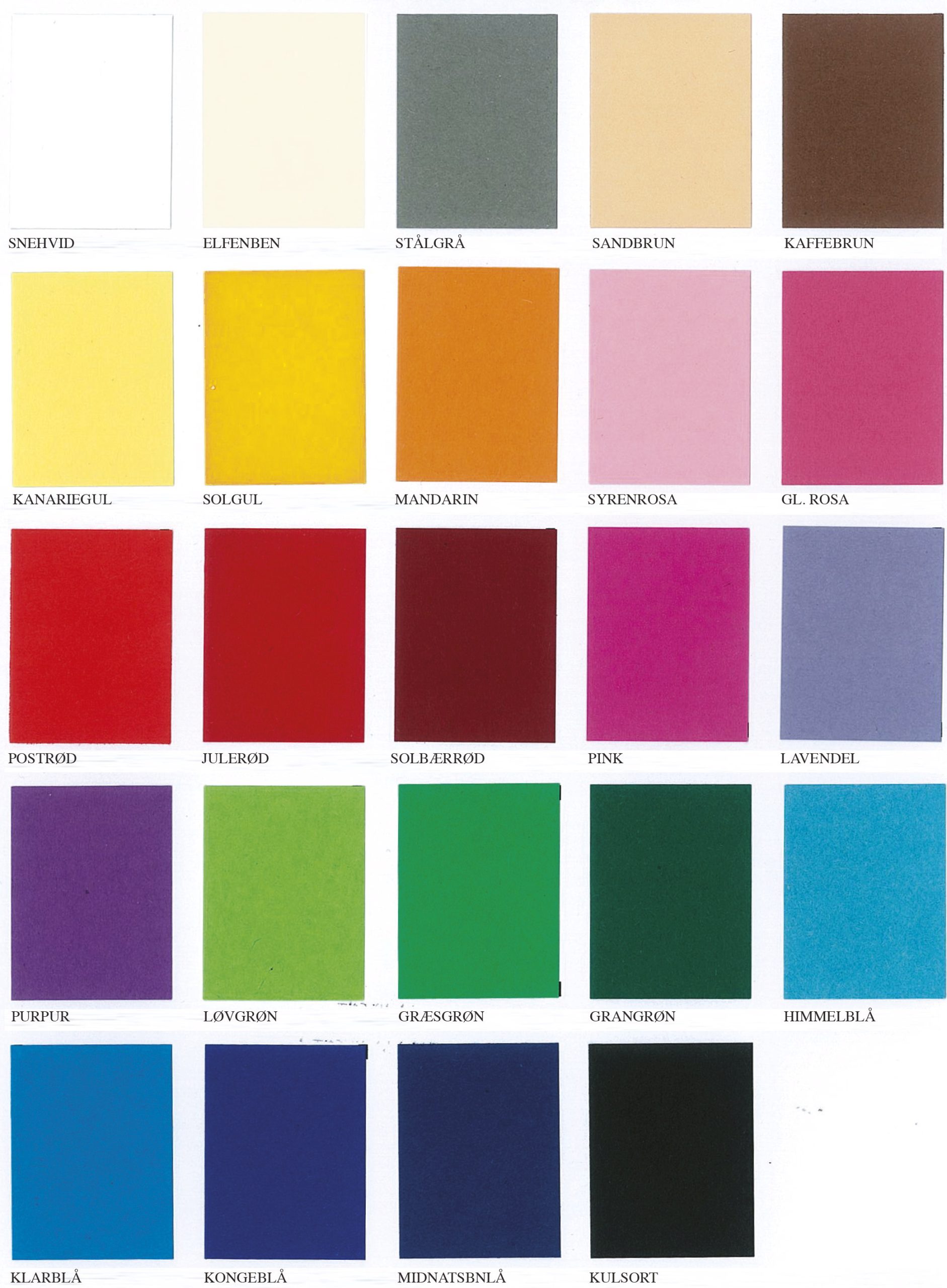Kartonen findes i 24 flotte farver, som du kan se ovenfor under billeder.
