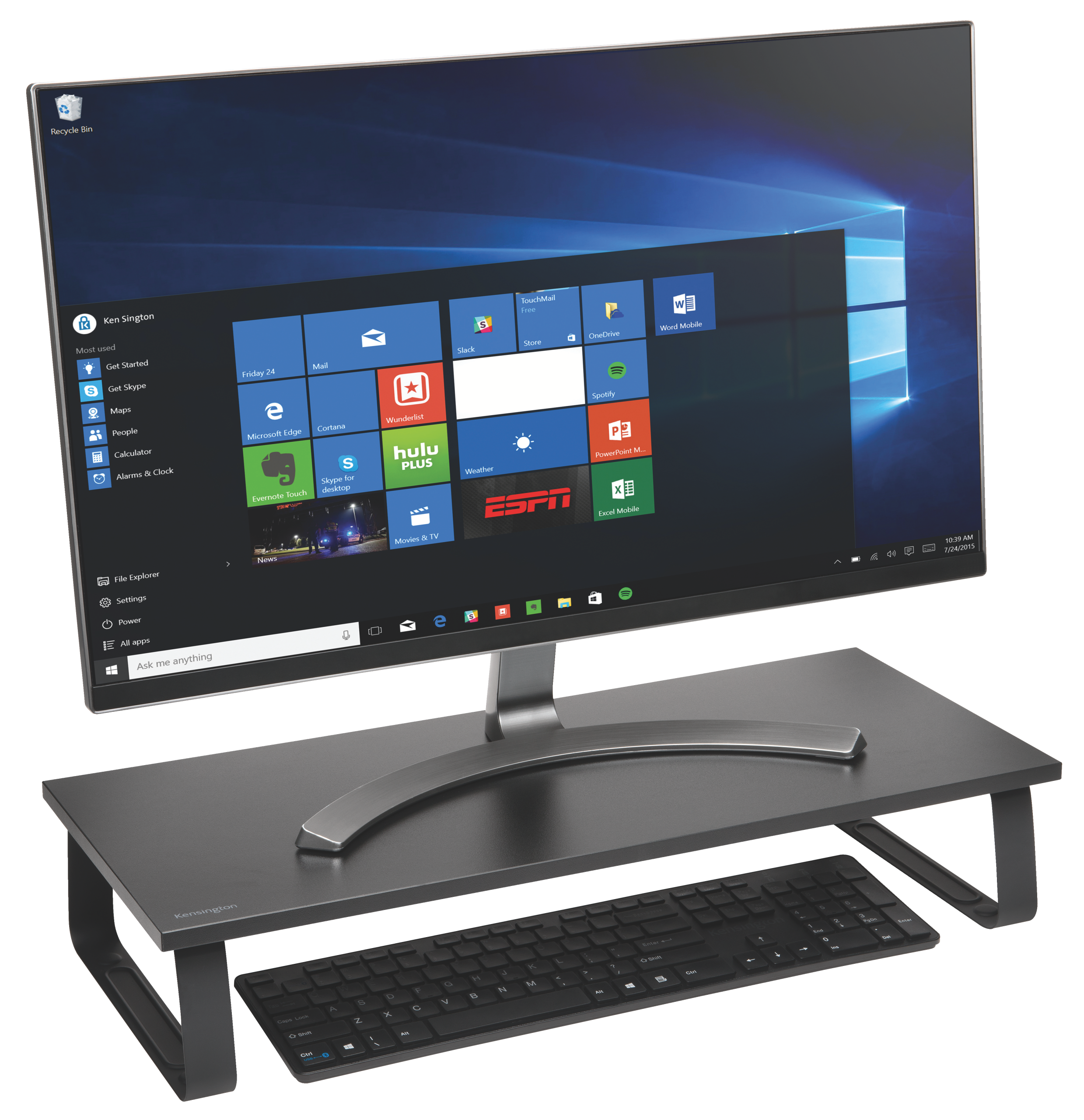 Dette ekstra brede skærmstativ fra Kensington kombinerer et holdbart og stilfuldt design med de ergonomiske fordele ved at hæve din skærmhøjde. Den ekstra brede platform tilbyder et organiseret arbejdsmiljø med masser af plads nedenunder til at opbevare et tastatur og tilbehør i fuld størrelse. Stålsoklen løfter din skærm til en optimal synshøjde for at fremme en sund kropsholdning og øge produktiviteten. Et essentielt skærmstativ til moderne kontorer med fokus på medarbejdernes velvære. Understøtter iMacs og eksterne skærme op til 32″ og 20 kg.