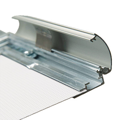 Sølvgrå snapramme med antirefleks frontplade, der gør det nemt at læse indholdet, selv i direkte sollys.
