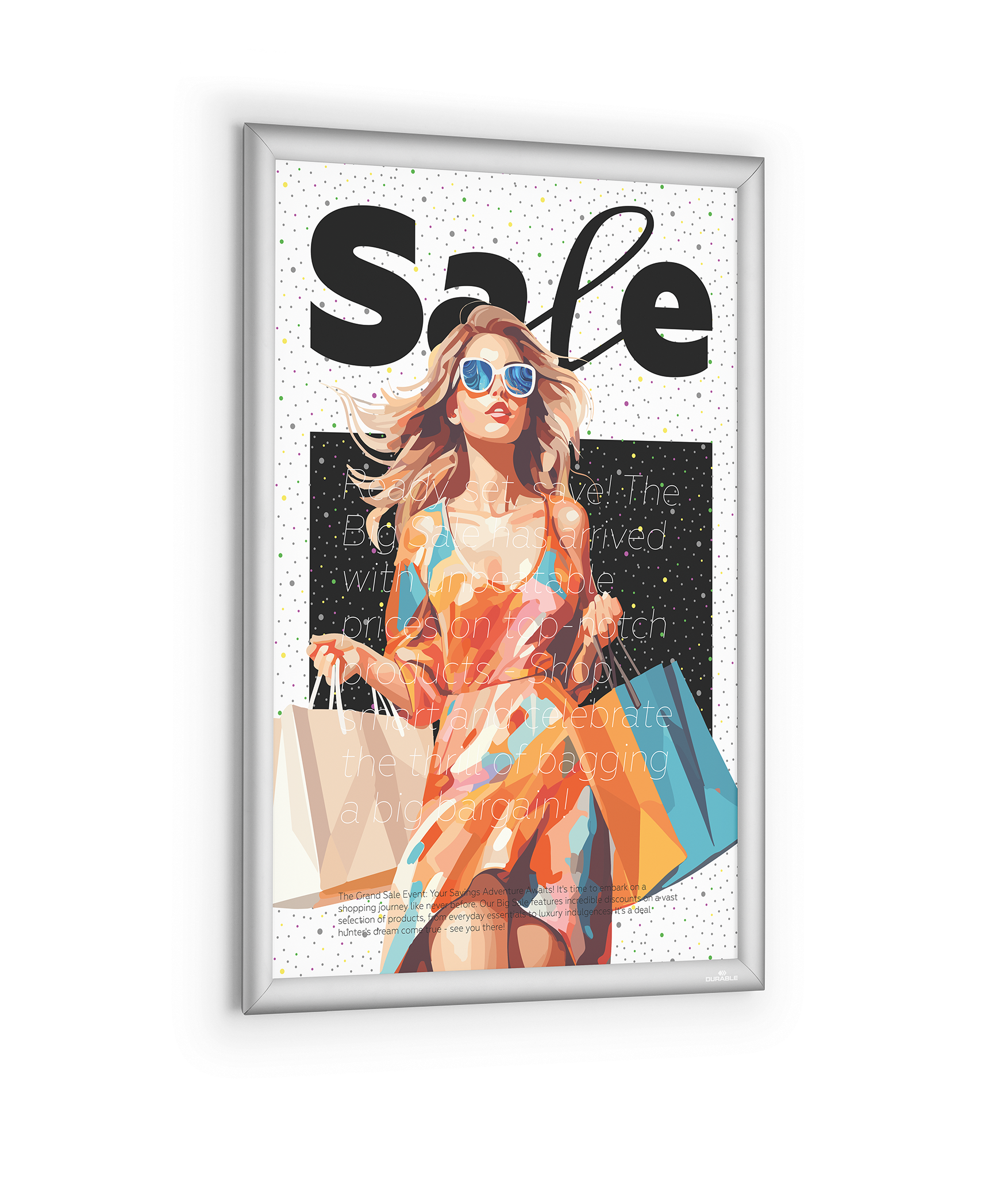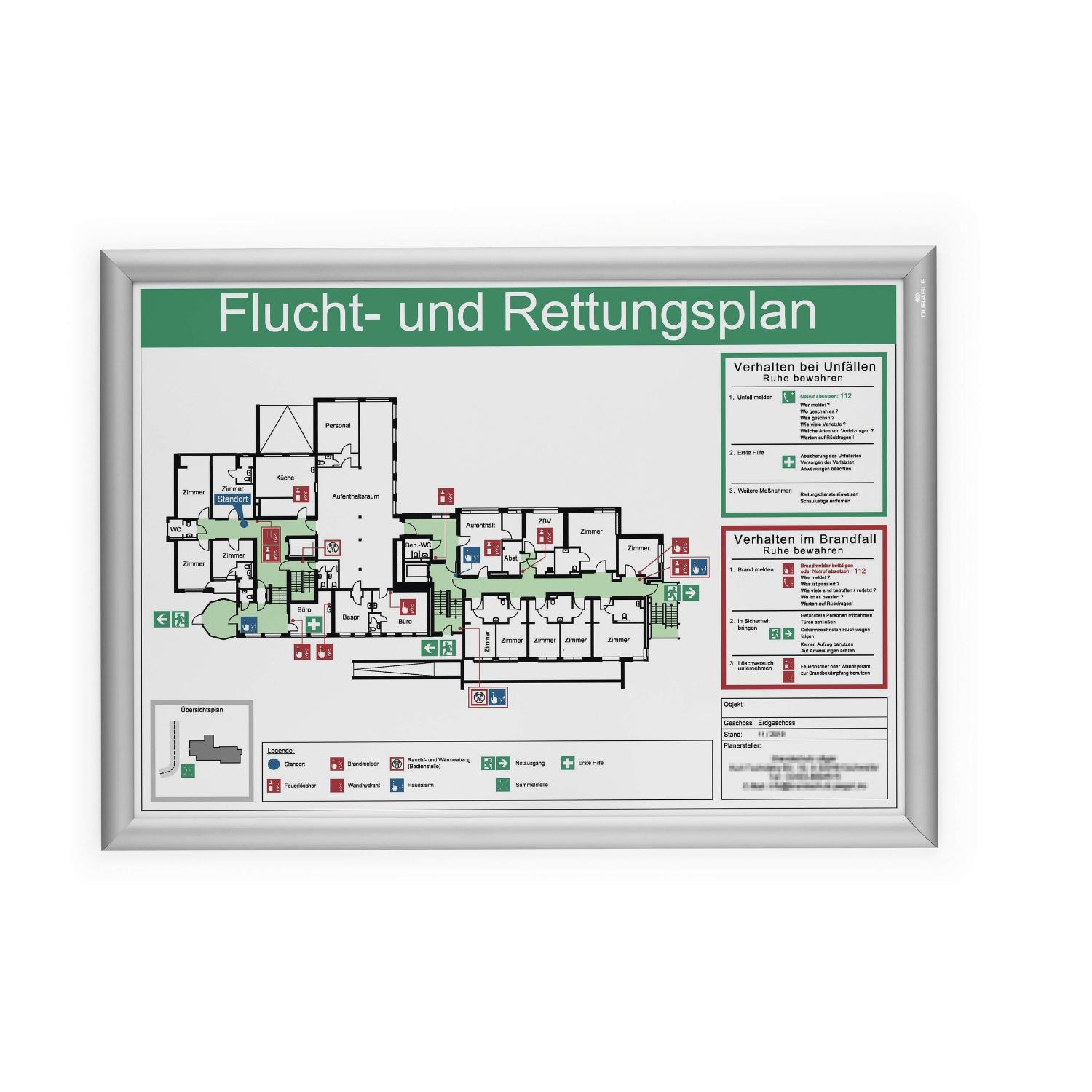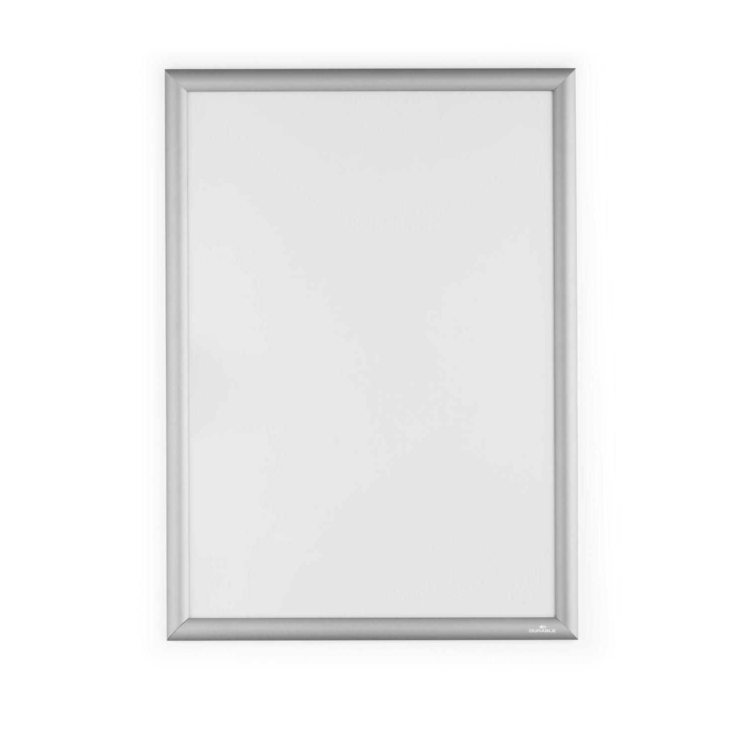 Klassiske klikramme, snapramme, klapramme er nyttige i fitnesscentre, kontorer, hoteller, messer og butikker til pænt at vise information, der skal udskiftes fra tid til anden. Udskift dokumentet ved at folde alle 4 sideprofiler op og fjerne den UV-bestandige og antireflekterende plastfront, der beskytter materialet. Klikrammen er fremstillet med en 25 mm bred anodiseret aluminiumprofil, hvilket gør aluminiumoverfladen mere holdbar. Bagsiden af klikrammen er fremstillet af holdbart polystyren. Monteringssæt medfølger, det indeholder skruer og ravpluks samt selvklæbende tape til valgfri vægmontering i høj- eller tværformat. Udvendige dimensioner: 480 x 650 x 12 mm, H x B x D Indvendige dimensioner: 450 x 625 mm, H x B