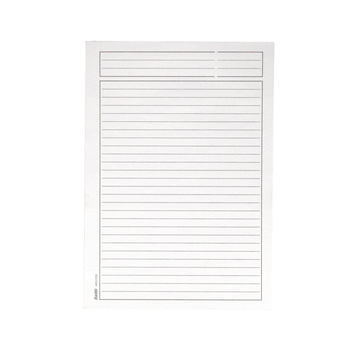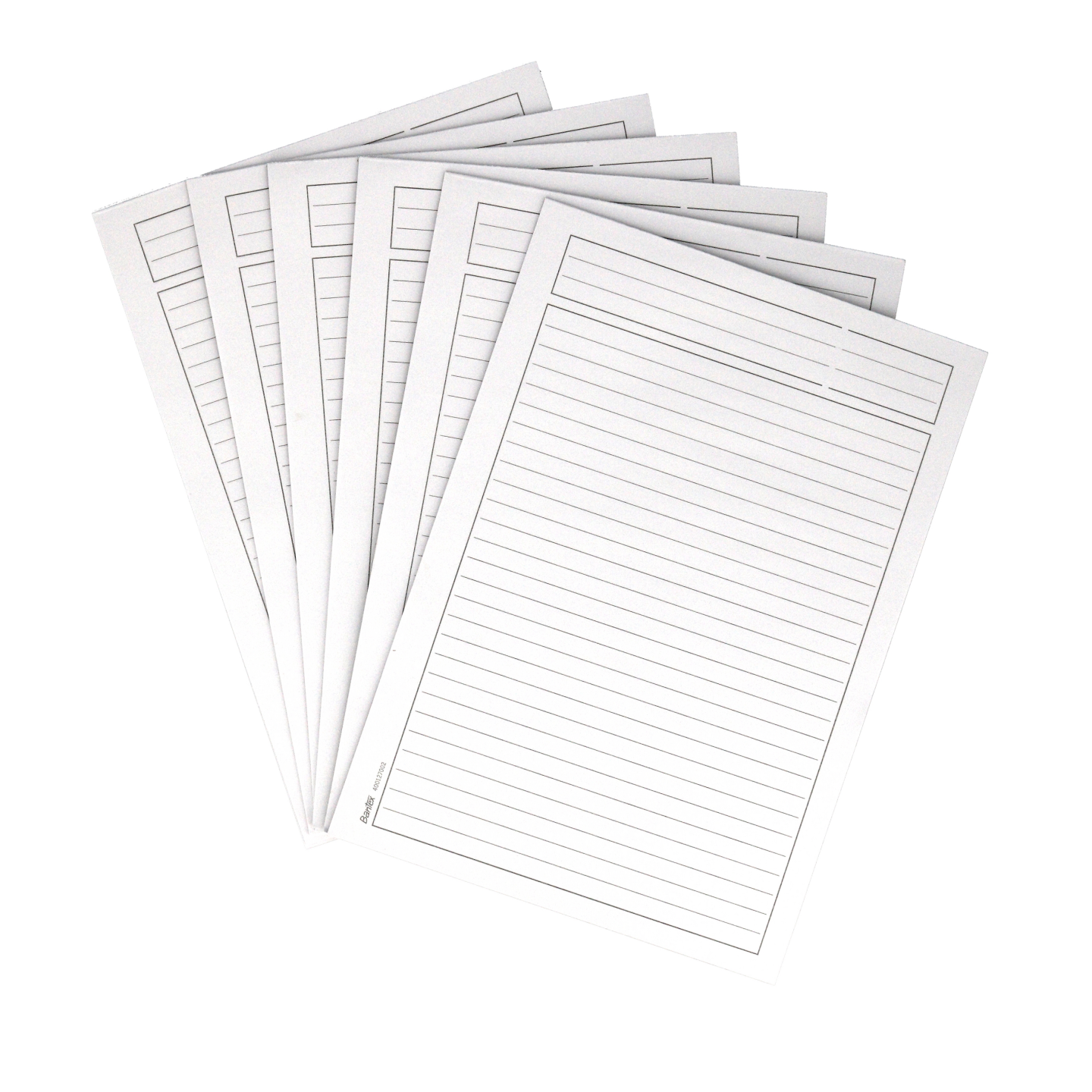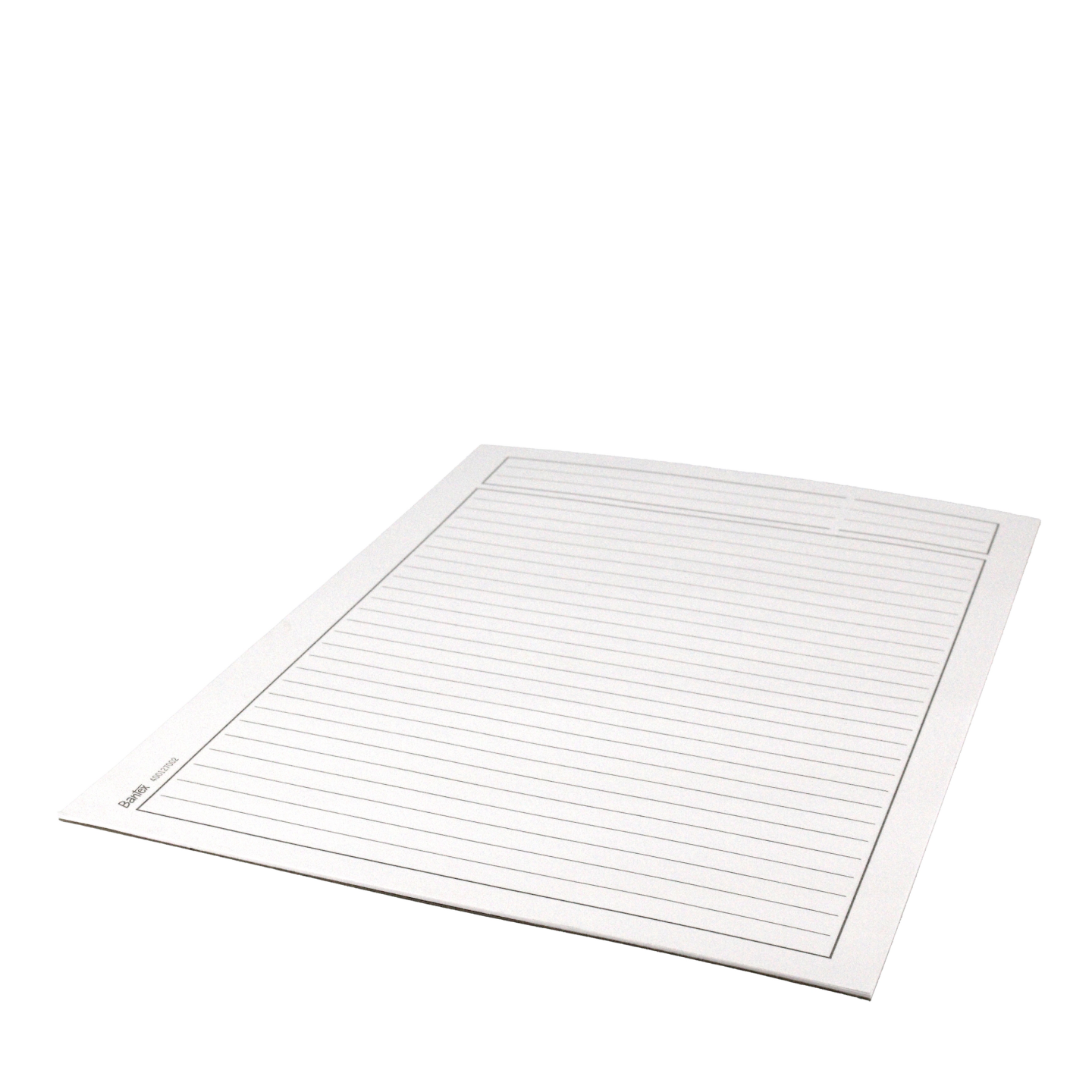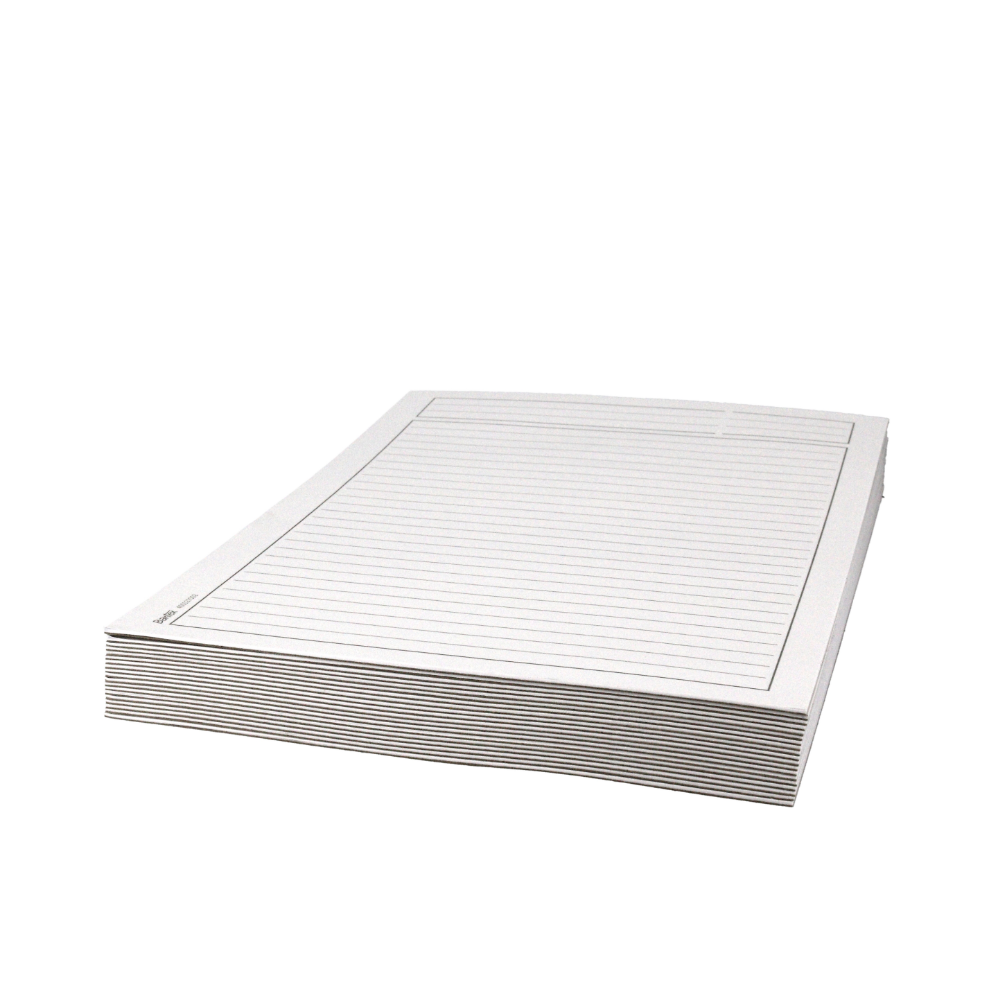 Hvid 60g papir, linjeret med hoved. Certificeret med den nordiske svan og EU-ecolabel, der garanterer den reducerede miljøpåvirkning af papirprodukter i hele deres livscyklus, fra råmaterialer til levetid.