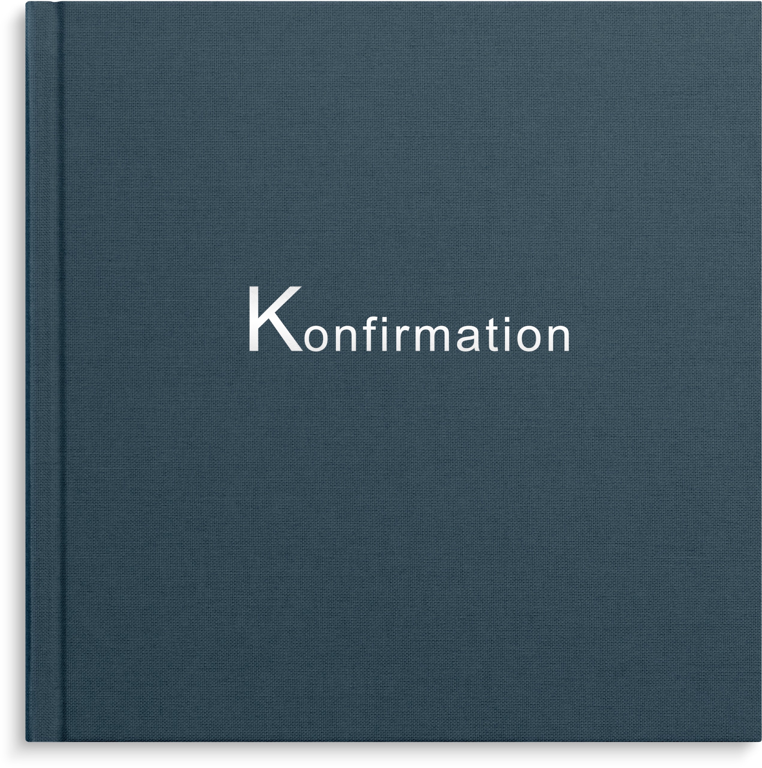Konfirmationsbog i tekstilpræg med flot sølvtryk. Foran i bogen er der linjer til at angive oplysninger om konfirmand, dato, kirke, præst og konfirmationsord. Bogen har et stilfuldt design med en tekstilforside med tryk og har også et mærkebånd. Format: