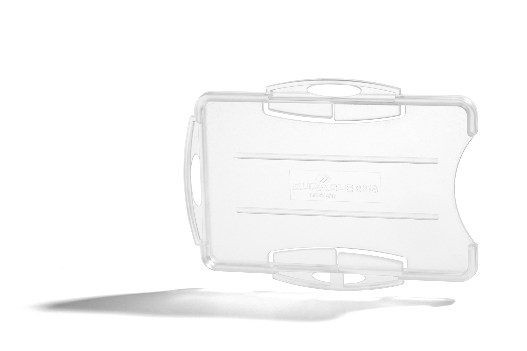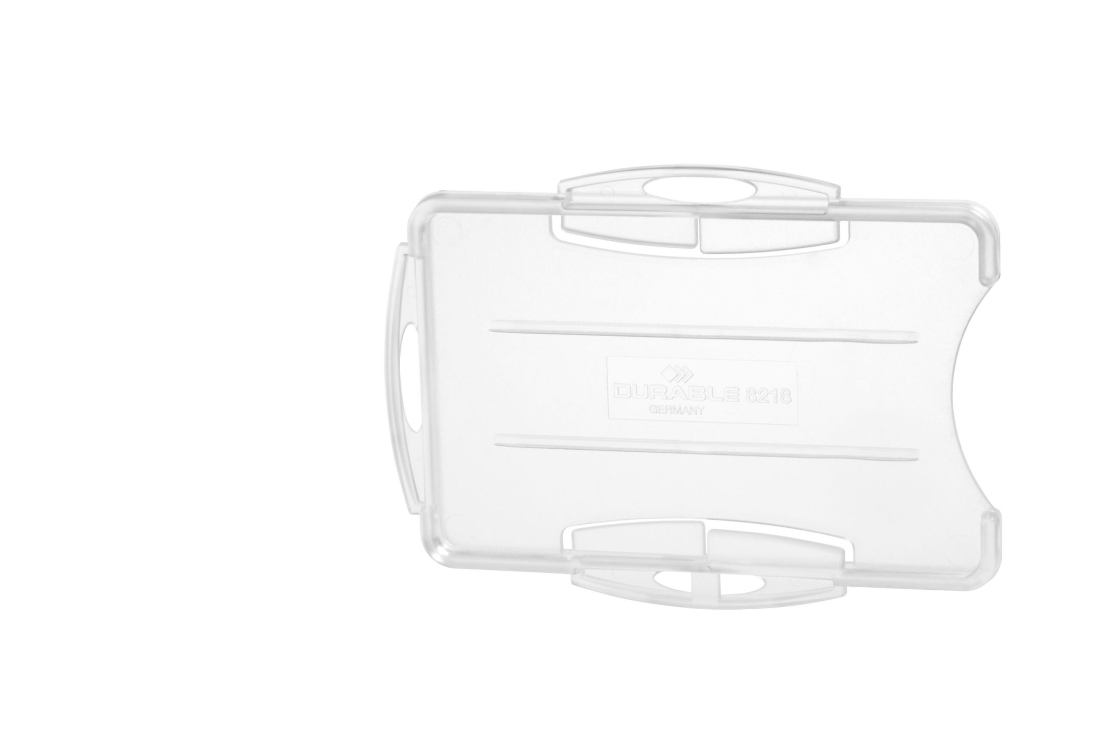 Adgangskort holder med åben front. Med plads til 2 stk. adgangskort, sikkerhedskort, plastikkort eller ID-kort. Hul design tillader kombination med kæde, yoyo eller tekstil halsbånd. Kan anvendes både liggende og stående. Til kort i størrelse 54x87mm.