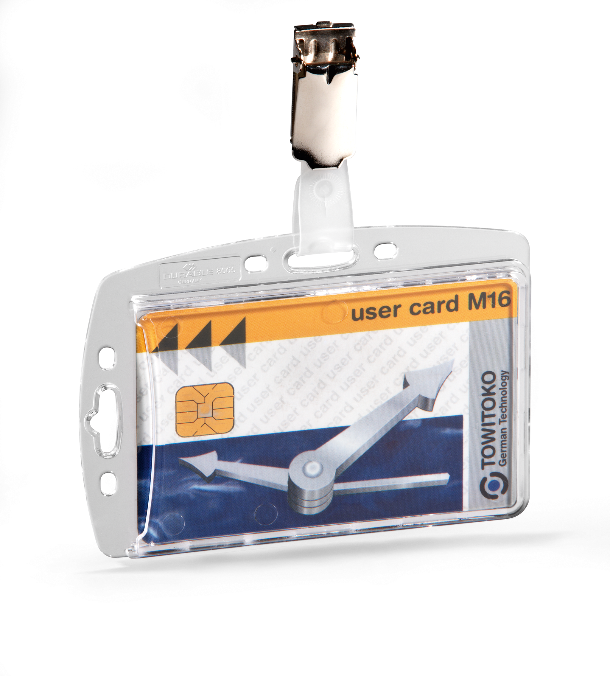 Adgangskort holder af slidstærkt akryl med drejelig seleklemme. Med plads til 1 stk. adgangskort, sikkerhedskort, plastikkort eller ID-kort. Enkelt at udskifte kort ved hjælp af det udstanset tommegreb. Hul design tillader kombination med kæde, yoyo eller tekstil halsbånd. Kan anvendes både liggende og stående. Til kort i størrelse 54x87mm.