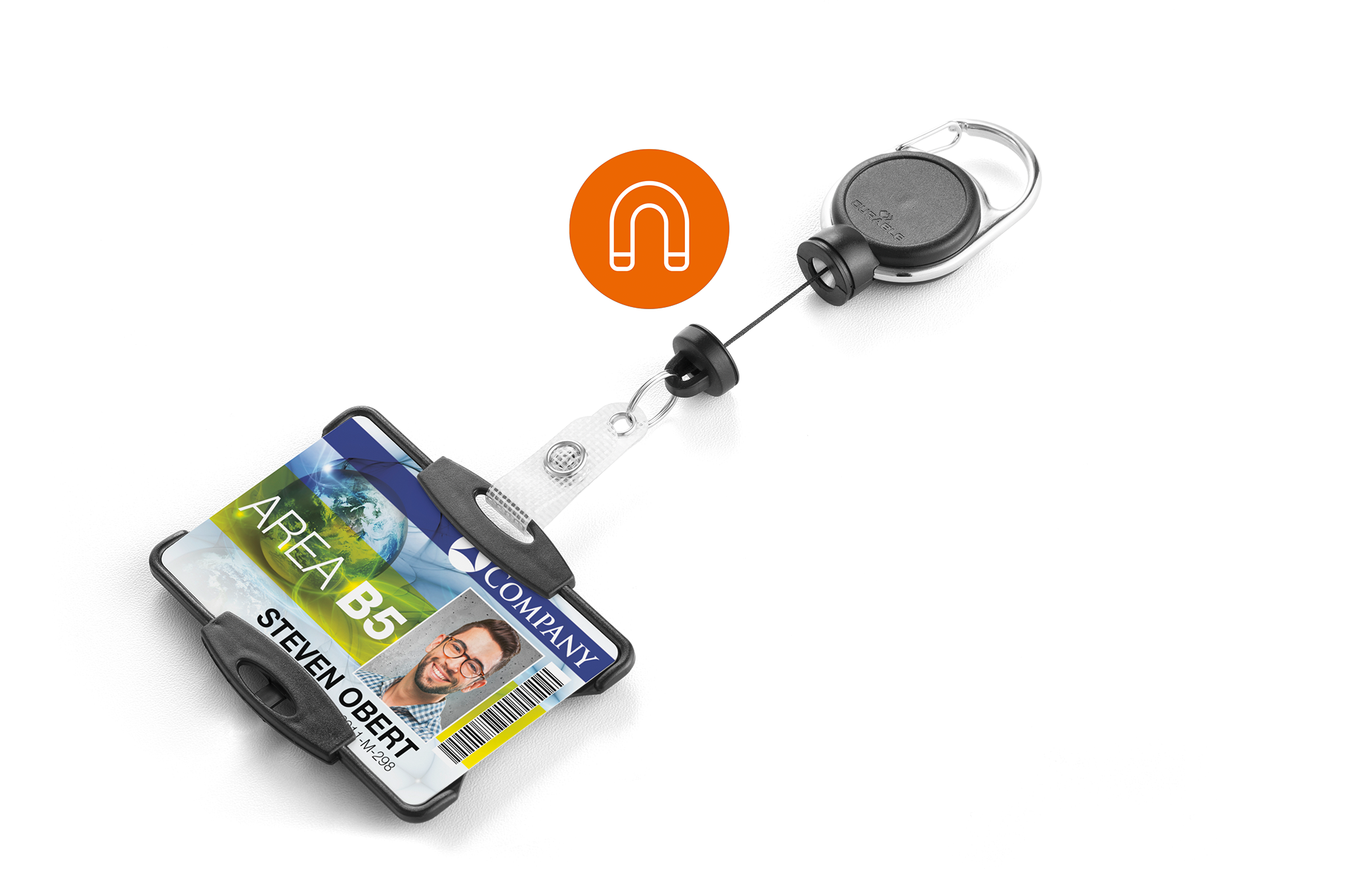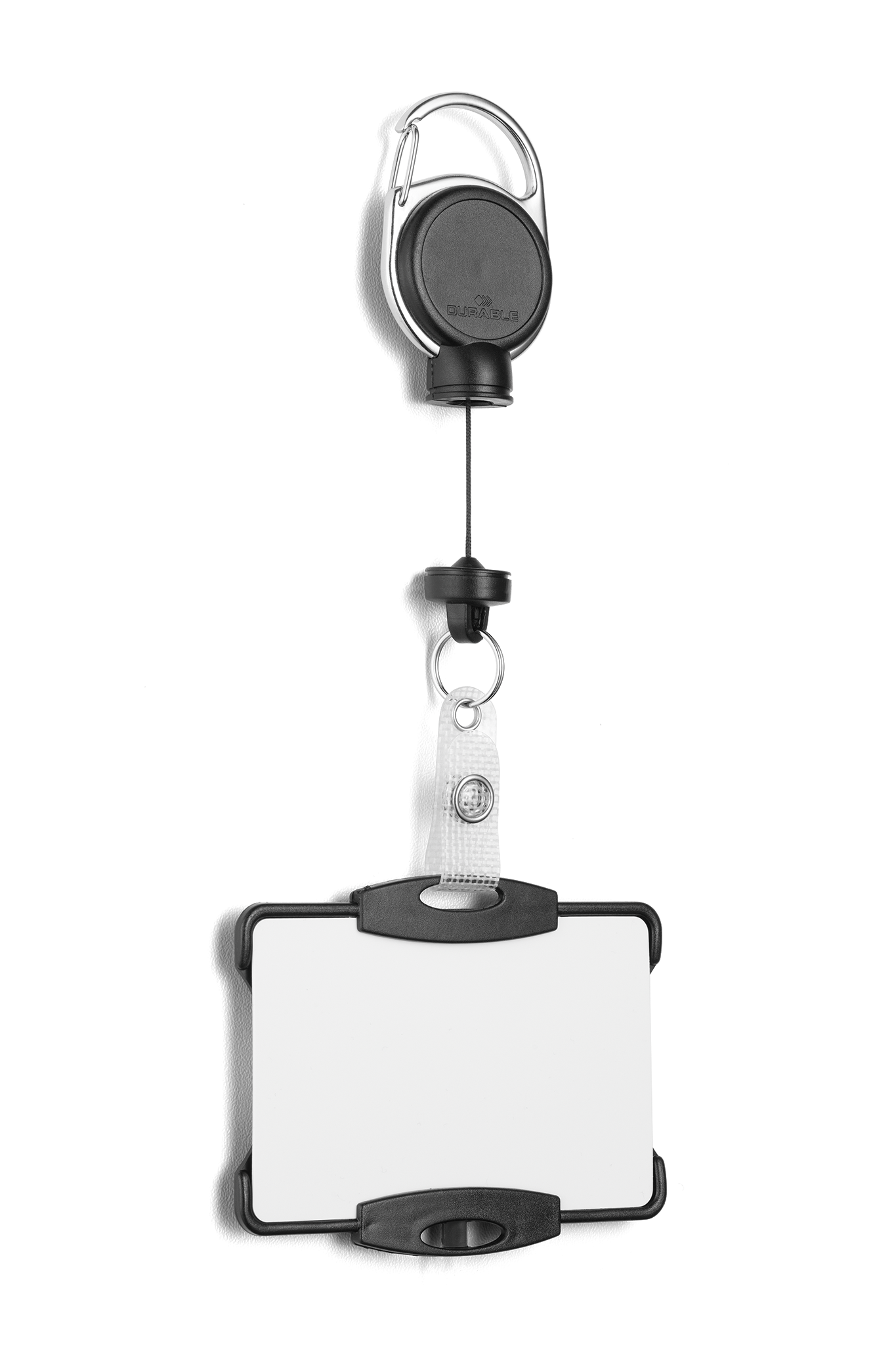 ID-kort og adgangskort skal beskyttes, men samtidig være tæt på. Kortholdere fra DURABLE gør det let; flere forskellige tilbehør og varianter på holderne gør det nemt at finde en god løsning. Åben kortholder til 1 kort Kan anvendes i stående og liggende format Med ekstra stærk yoyo-holder EXTRA STRONG med metal clip klemme, lille nøglering og forstærket snap knaprem Magnetisk lås understøtter vægten op til 300g Udtrækslængde: 60 cm Indvendige mål på kortholderen: 54 x 87 mm (H x B) * Den integrerede magnet kan forringe læsbarheden af kort med magnetstribe