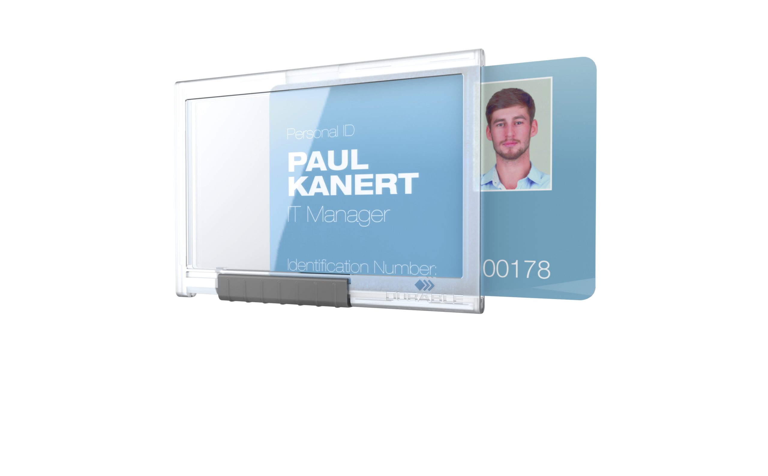 Adgangskort holder med plads til 1 stk. adgangskort, sikkerhedskort, plastikkort eller ID-kort. Kortholder beskytter kort som er kodet med RFID eller anden kodning og har en kortskyder som når kortet skubbes fremad, skiller kortet sig ud fra holderen og vil være let at tage ud. Klar plast gør kort i holderen er let læselige. Hul design tillader kombination med kæde, yoyo eller halssnor. Kan anvendes både liggende og stående. Til kort i størrelse 54x87mm.