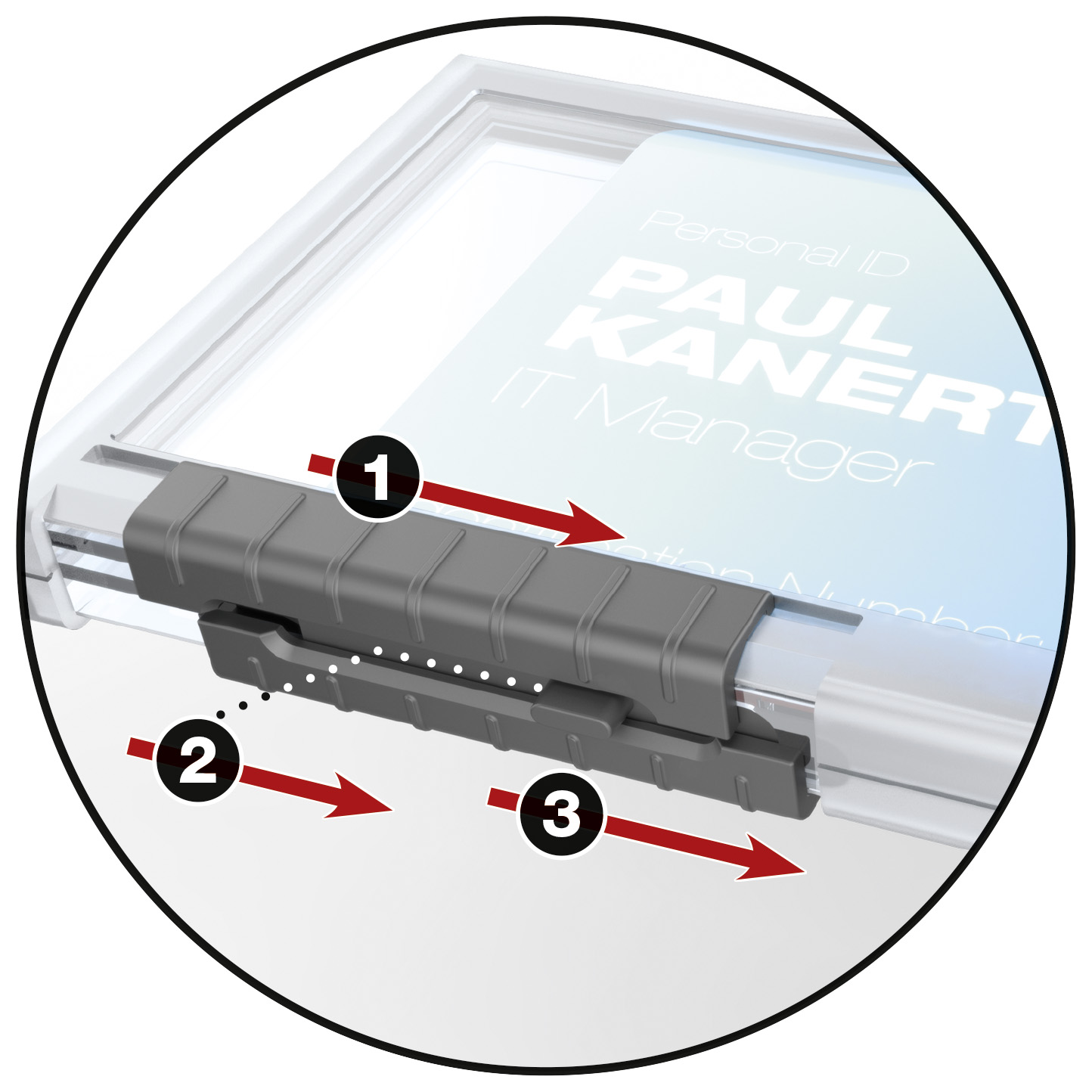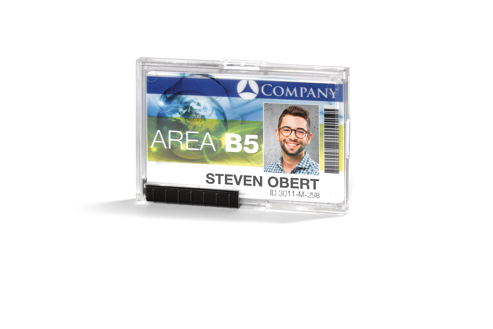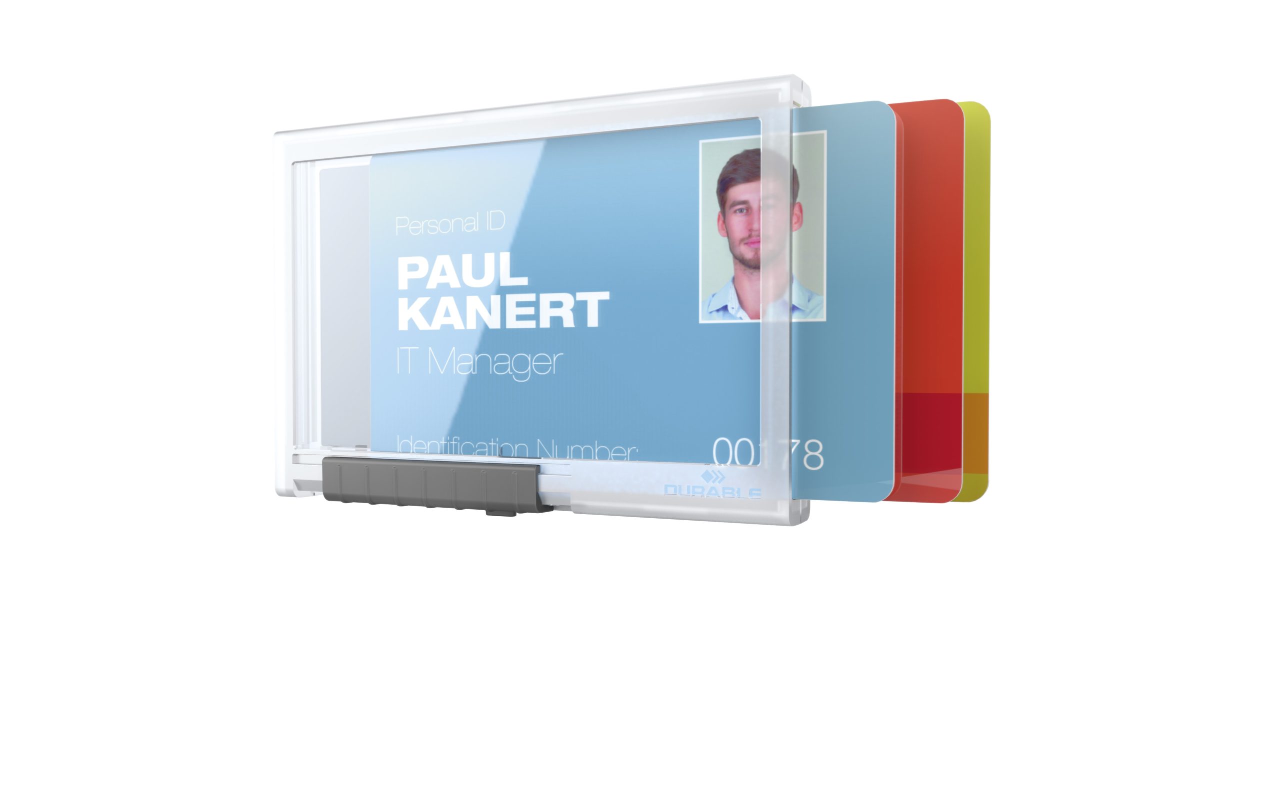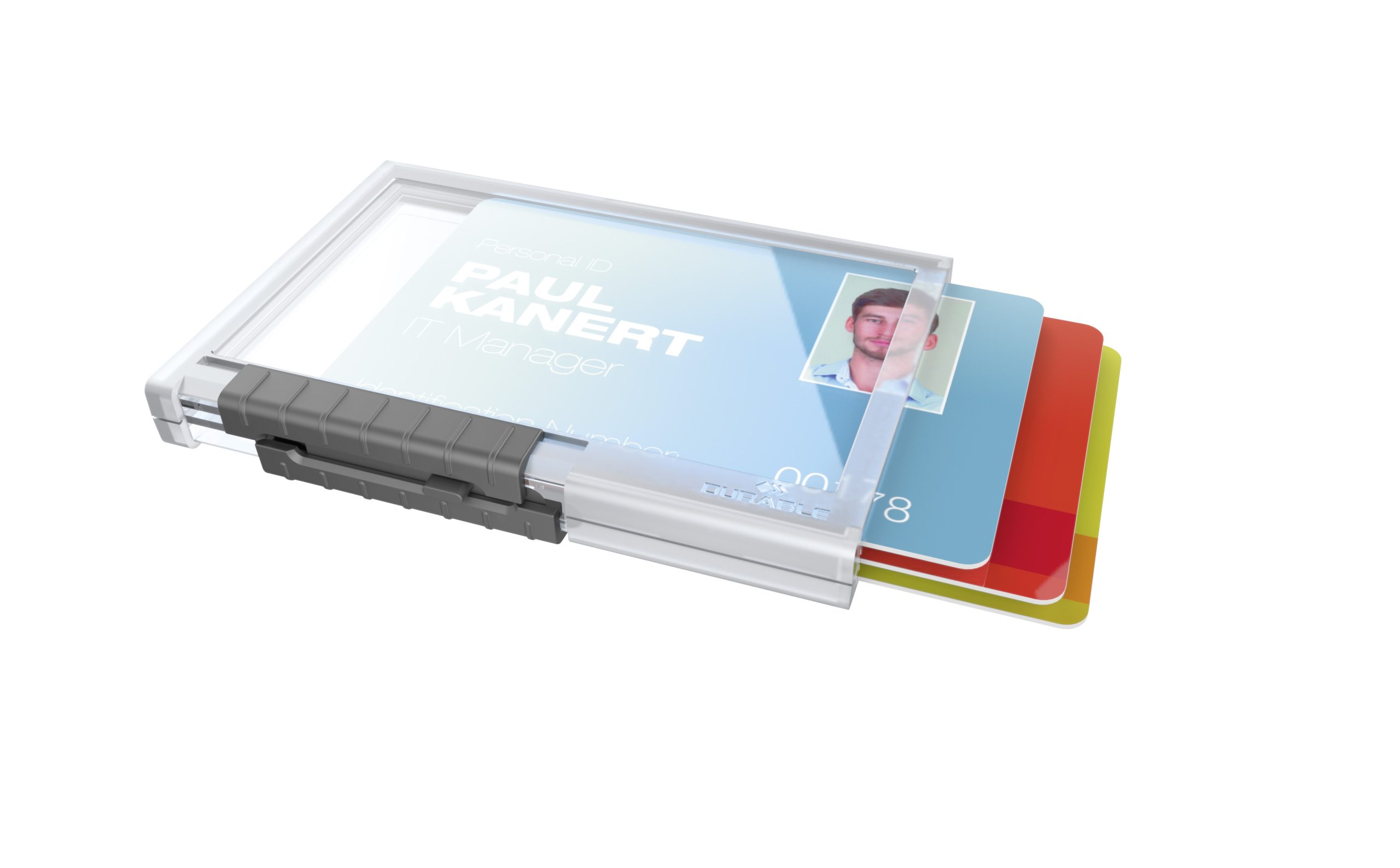 Adgangskort holder med plads til 3 stk. adgangskort, sikkerhedskort, plastikkort eller ID-kort. Takket være at hvert kort har et separat rum beskyttes begge kort som er kodet med RFID eller anden kodning. Hvert kort har en separat kortskyder som gør at når kortet skubbes fremad skiller kortet sig ud fra holderen og vil være let at tage ud. Klar plast gør kort i holderen er let læselige. Hul design tillader kombination med kæde, yoyo eller halssnor. Kan anvendes både liggende og stående. Til kort i størrelse 54x87mm.