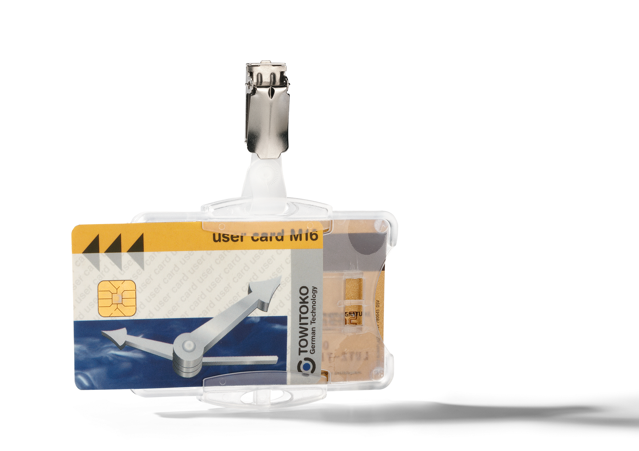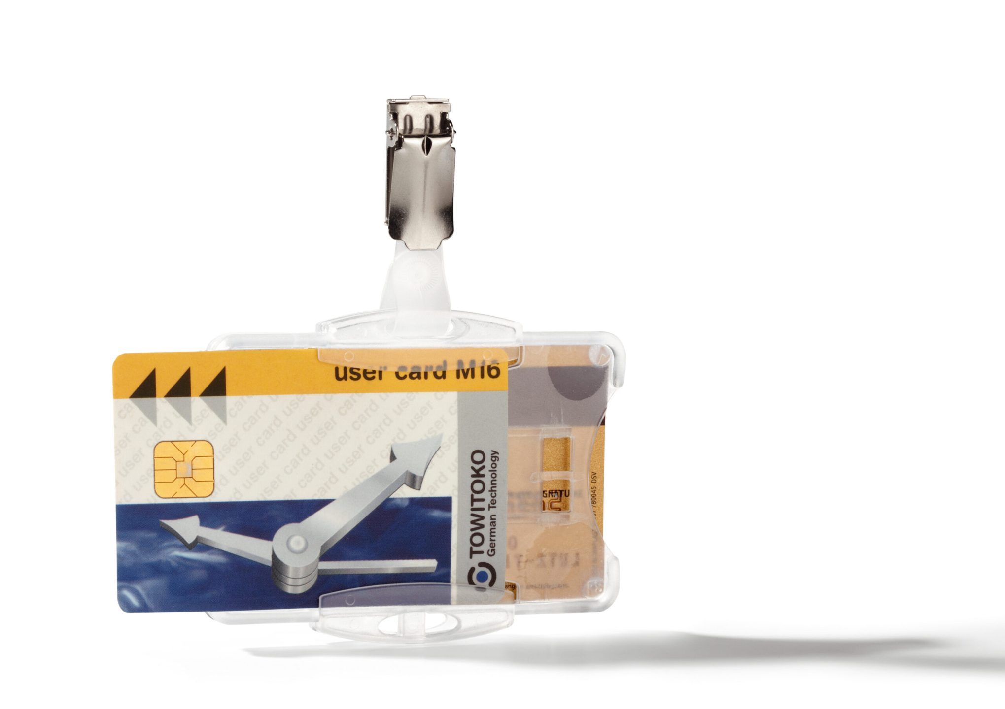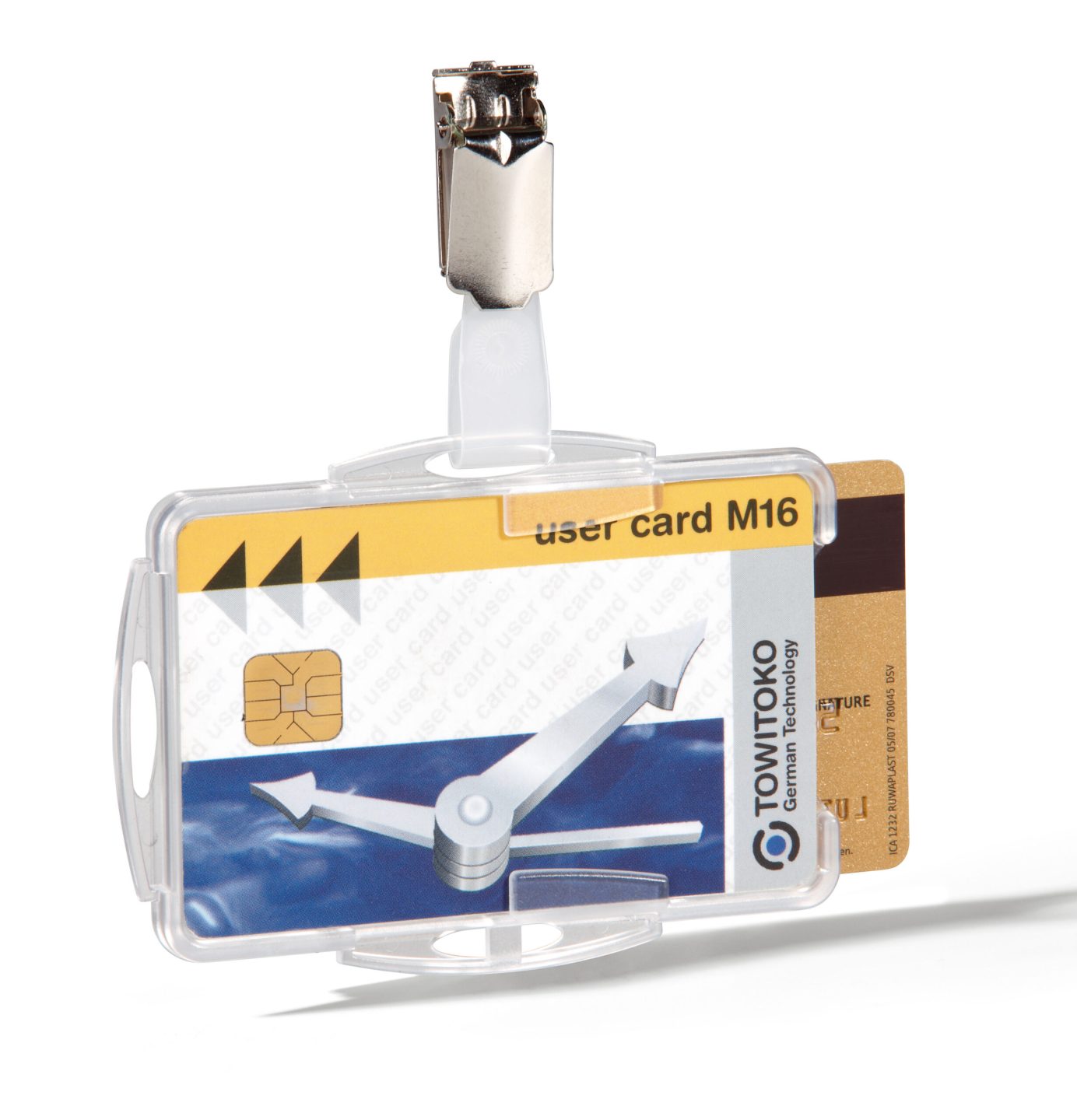 Adgangskort holder med åben front og stropklemme. Kortholder hænger altid i den rigtige position igennem at metalklemmen er drejelig. Med plads til 2 stk. adgangskort, sikkerhedskort, plastikkort eller ID-kort. Kan anvendes både liggende og stående. Til kort i størrelse 54x87mm.