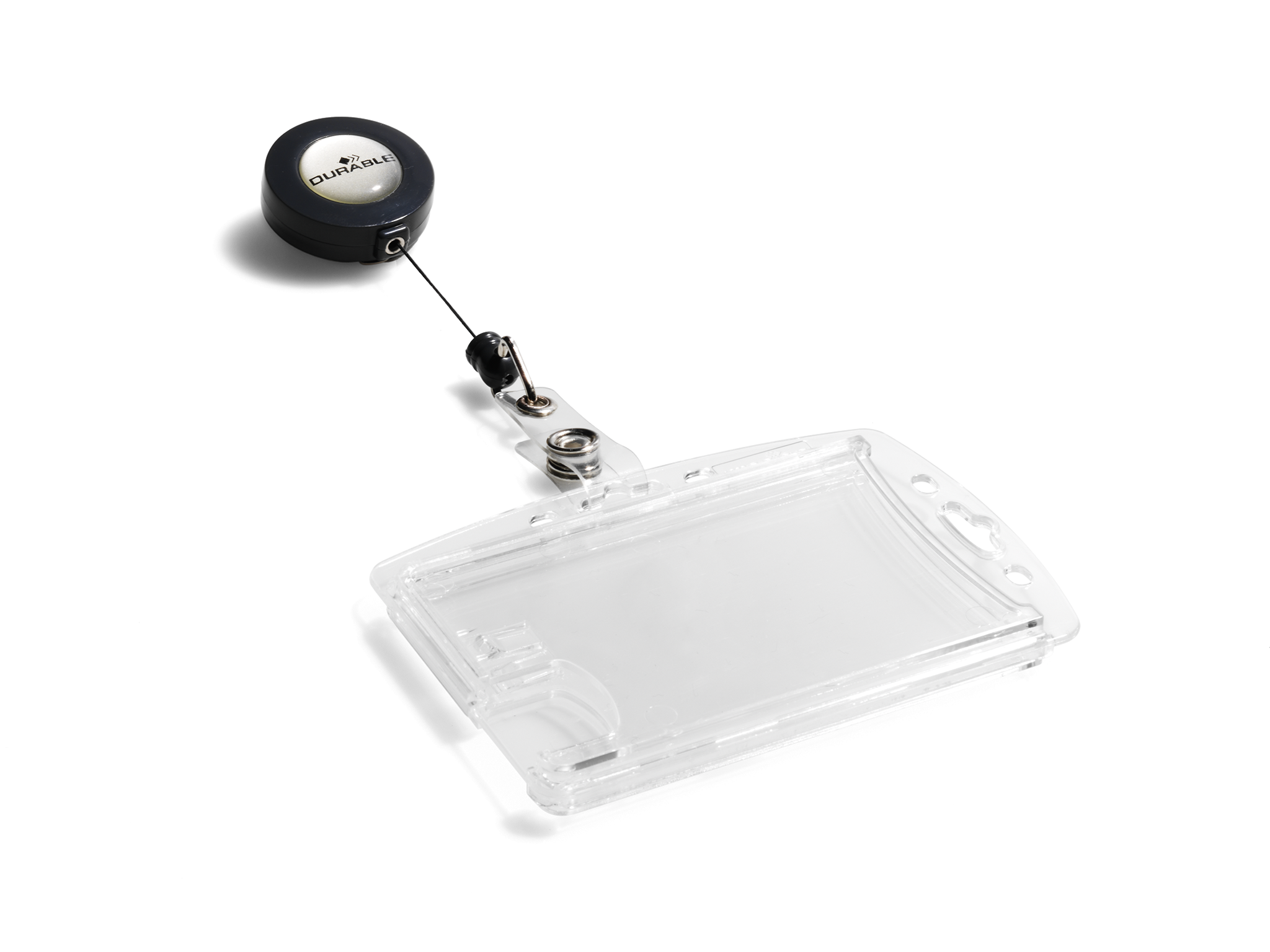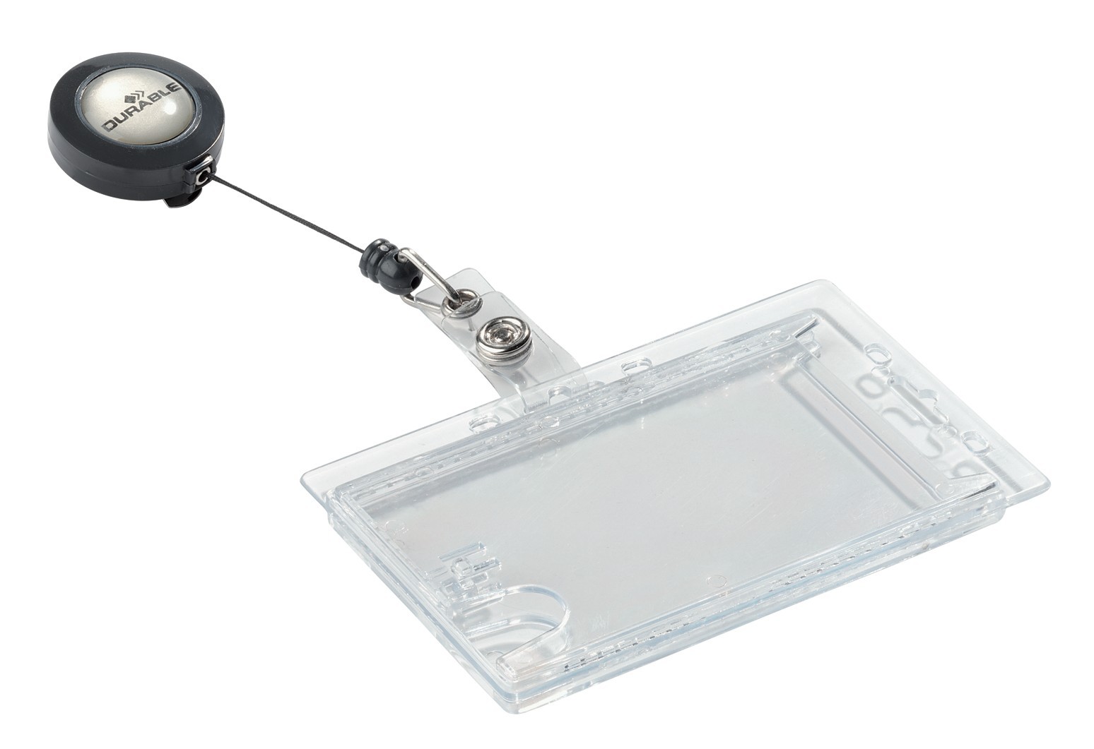 Adgangskort holder af slidstærkt akryl med yoyo med 80 cm udtræk og plaststrop med trykknap. Med plads til 2 stk. adgangskort, sikkerhedskort, plastikkort eller ID-kort. Enkelt at udskifte kort ved hjælp af tommegreb. Metalclips på bagsiden af yoyo til fastgørelse til dit bælte eller linning. Kan anvendes både liggende og stående. Til kort i størrelse 54x87mm.