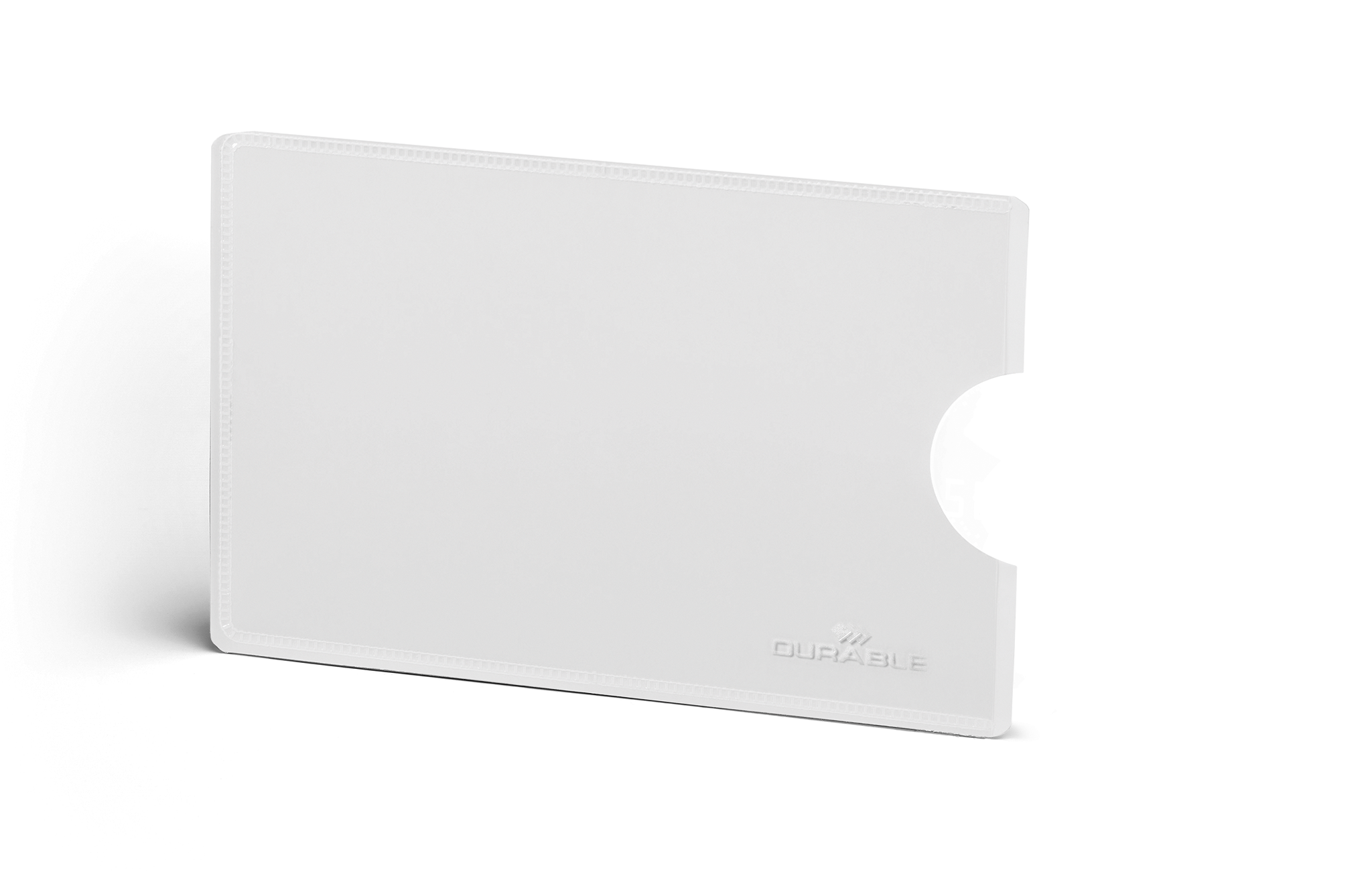 Kreditkort etui som beskytter imod kriminel kortafluring af personligt data Beskyttelsesetui med transparent forside til 1 kort Etuiet er T¨V-godkendt på 13,56 MHz Med udstanset tommelfinger for nemt at fjerne kortet Indre mål: 54 x 86 mm Ydre mål: 61 x 90 mm