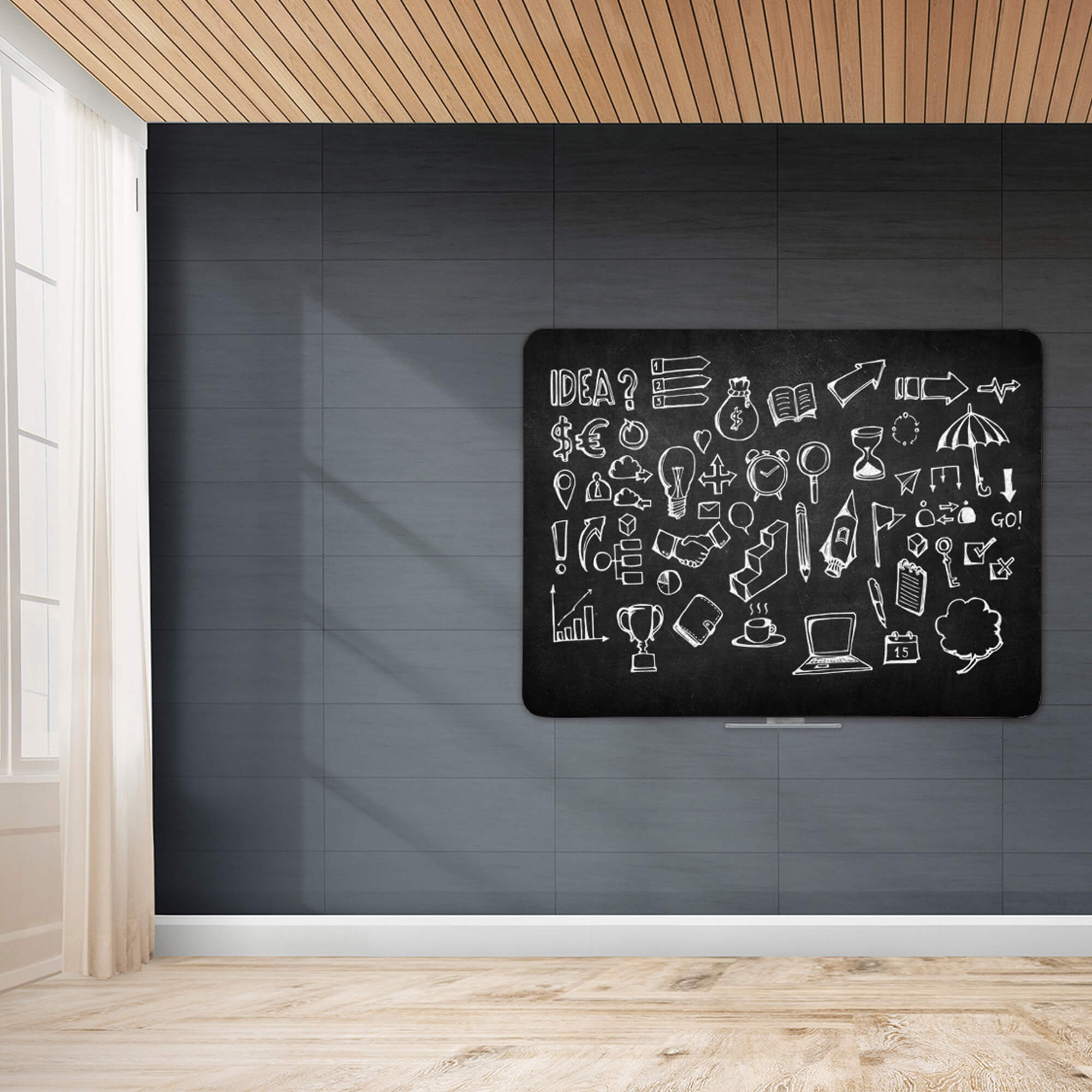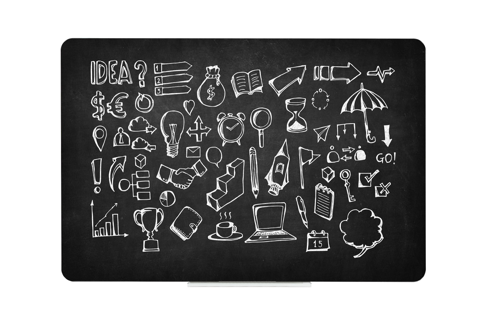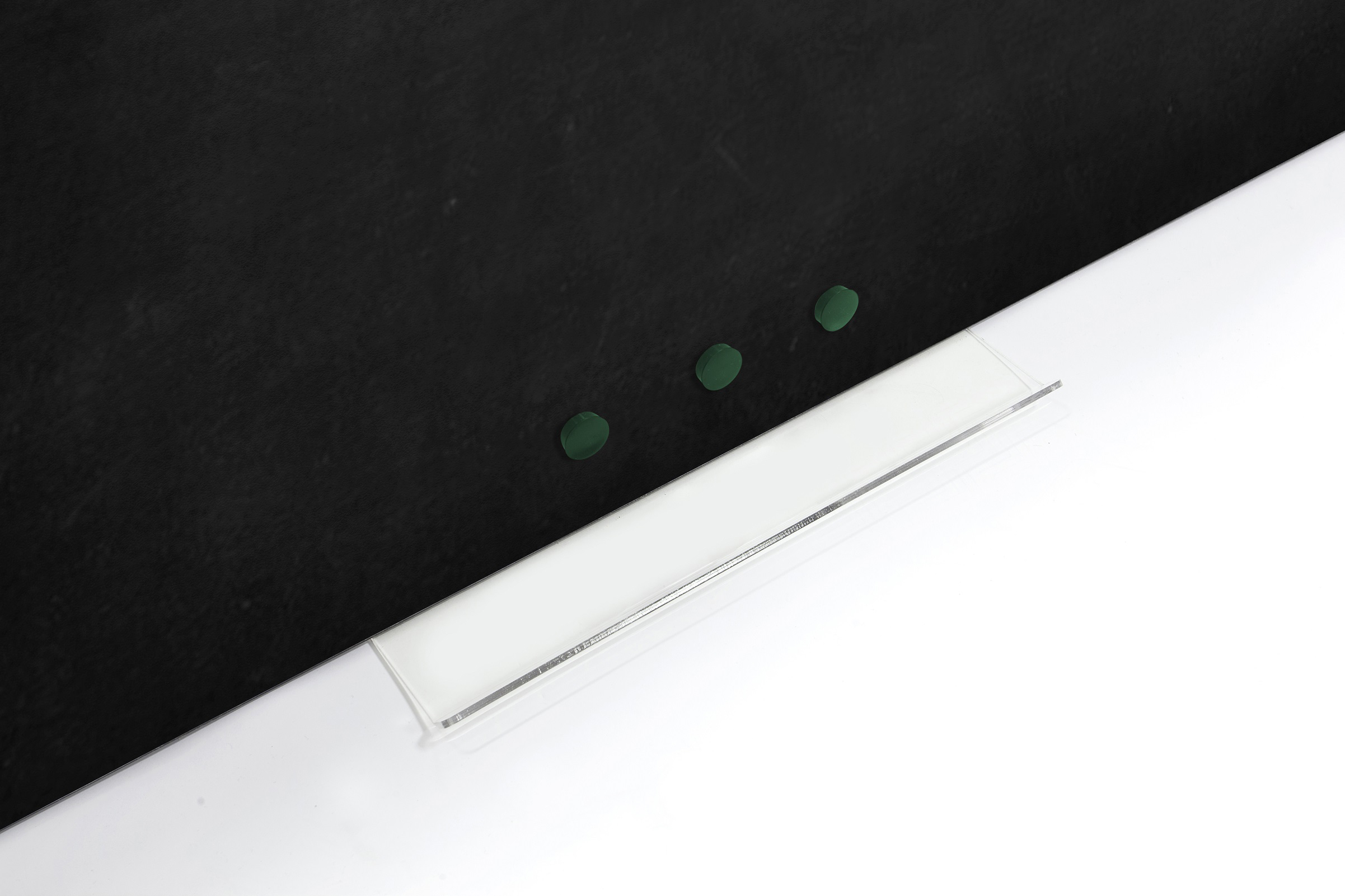 Rammeløs, magnetisk, sort kridttavle, med afrundede hjørner. 57 x 45 cm. En klassiker i nyt og lækkert design. Velegnet både i private hjem, og til skoler, kontorer og mødelokaler. Tavlen kan hænges vandret eller lodret efter ønske. Vi anbefaler ikke at man skriver med en kridtmarker på en kridttavle, da teksten kan være vanskelig at fjerne igen. Brug i stedet almindeligt tavlekridt. Kridt medfølger ikke men kan købes separat.Leveres inkl. 30 cm pennebakke i klar akryl, 3 magneter, skruer og plugs.