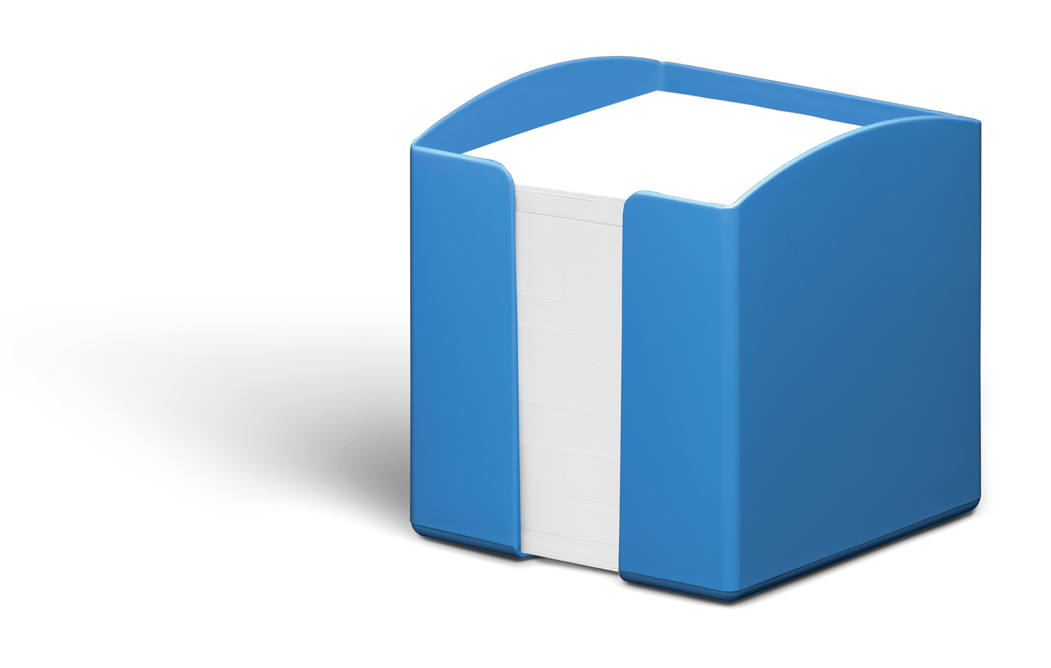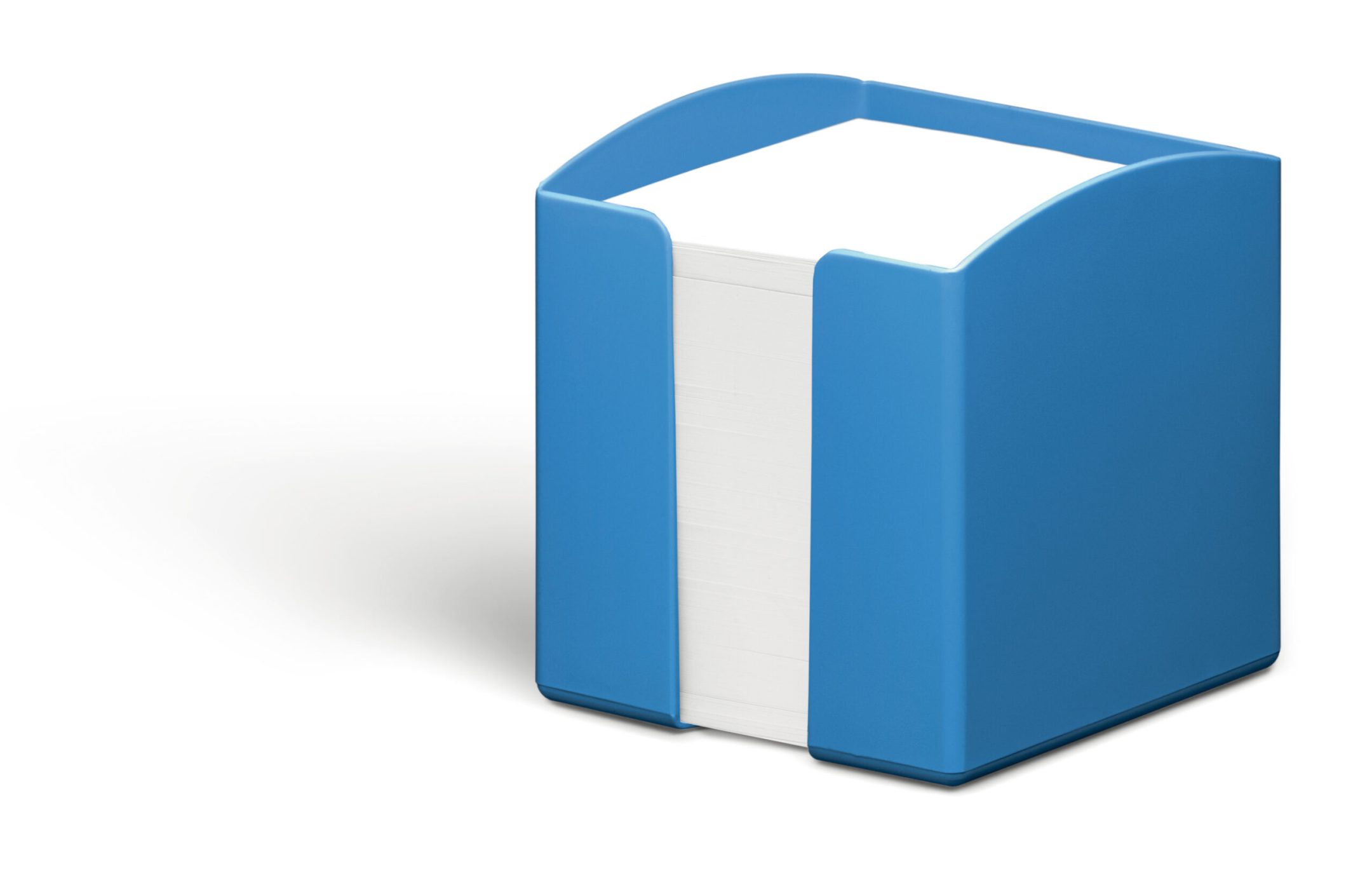 Tidløs kubusblokholder Fremstillet af genbrugsplast i Blue Angel-kvalitet Med 800 ark genbrugspapir i Blue Angel-kvalitet, størrelse 93 x 93 mm Stor volumen – Nem udtagning af arkene takket være åbent udtagningsrum Mål: 100 x 105 x 100 mm (B x H x D)