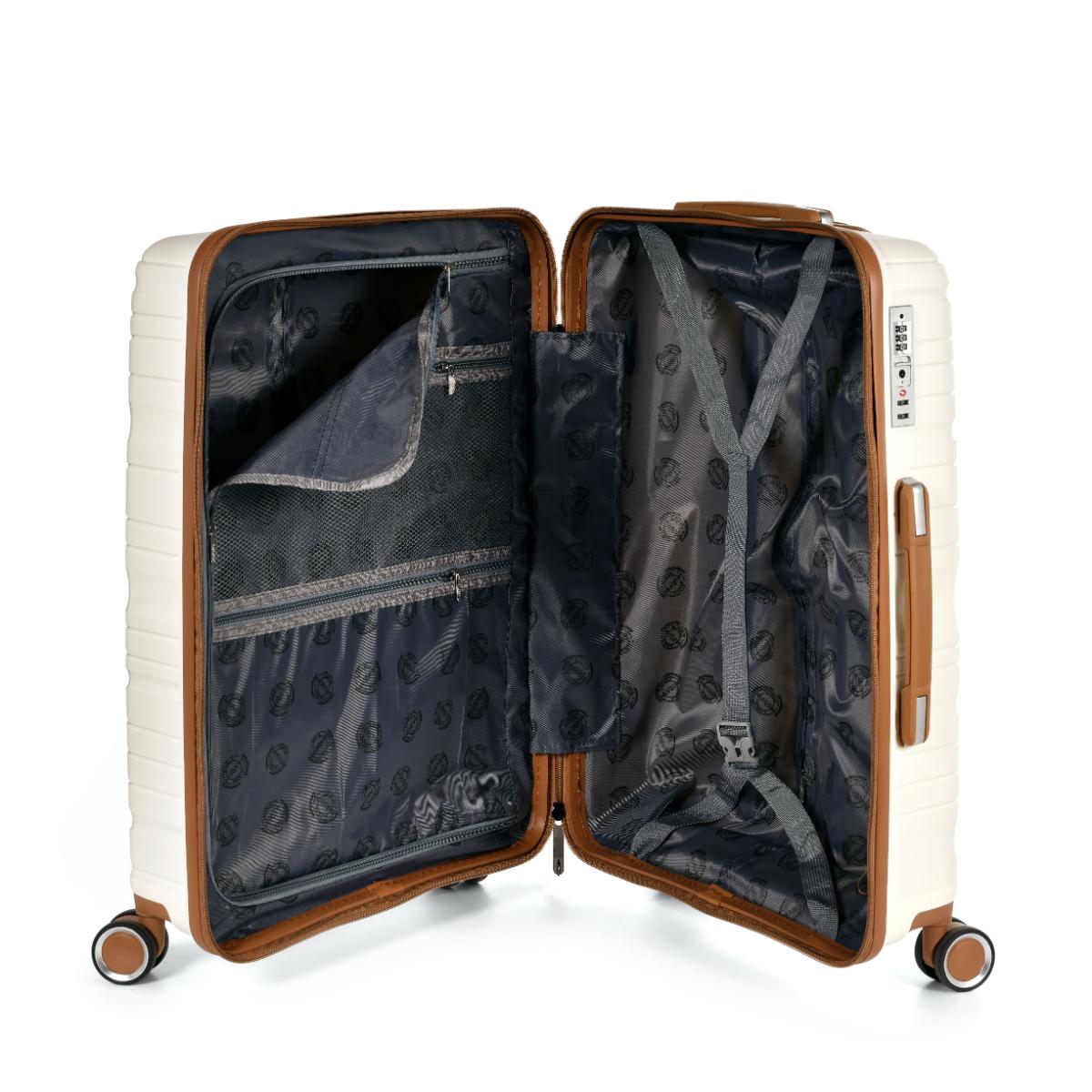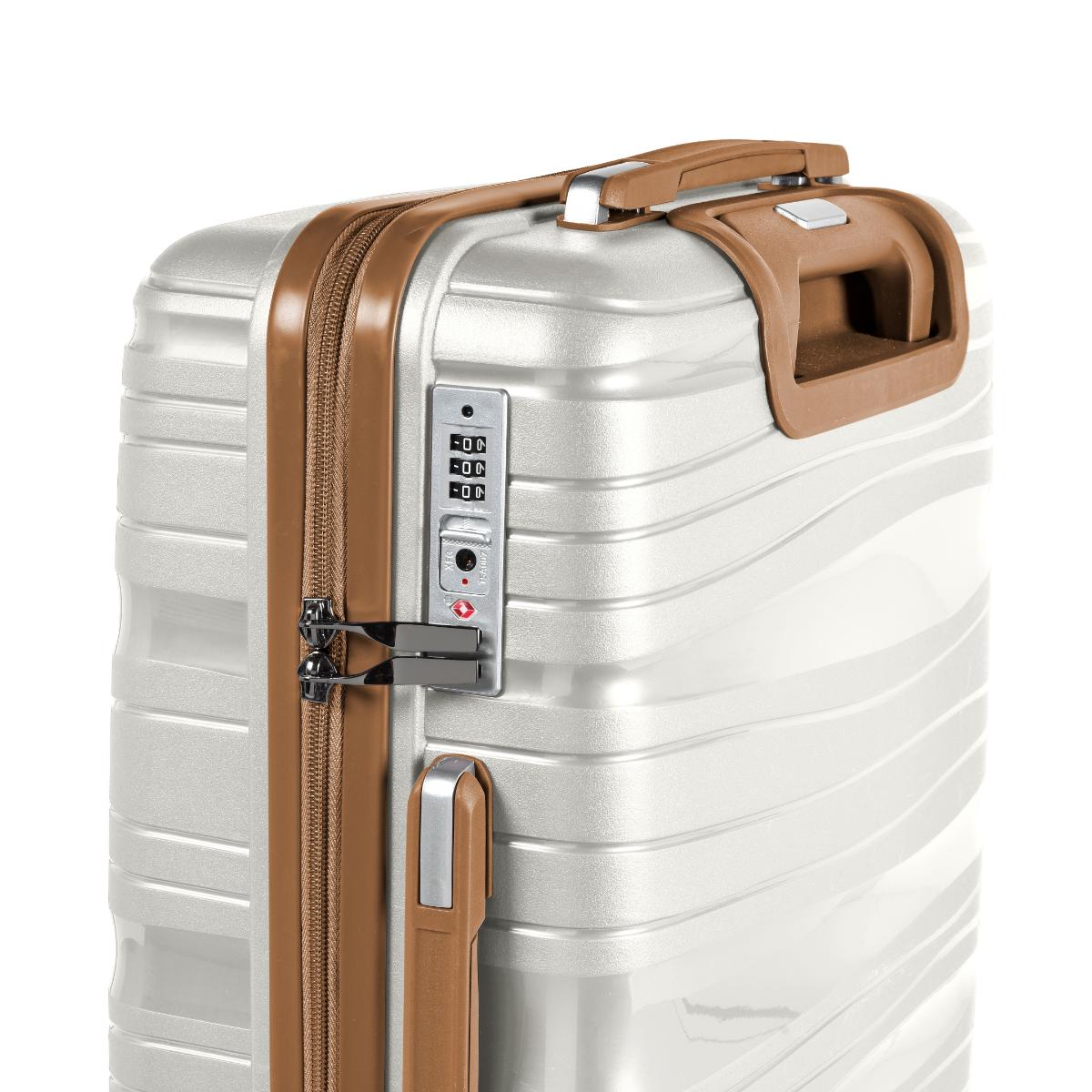 Kufferter i tre størrelser – lille, større og stor. De er lette og holdbare, uden unødvendigt ekstraudstyr – og har en størrelse, der passer til forskellige typer rejser. Ekstra slankt design med brune detaljer, som gør det lettere at få øje på dem på bagagebåndet. Alle tasker har fire dobbelthjul, som ruller let og lydløst. Og med det enkle teleskophåndtag i aluminium er de endnu nemmere at rejse med. Taskerne er lavet af PP-plast, som er en holdbar plast, og den matte finish gør den mere modstandsdygtig over for ridser. Tyverisikret dobbelt lynlås. Indbygget TSA-lås. 2 års garanti.