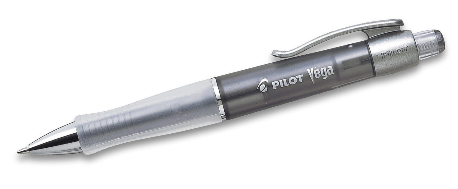 Pilot Vega er en bred kuglepen med gummigreb, der giver ekstra god skrivekomfort. Kuglepennen har en kuglebredde på 0,31 mm, hvilket giver en tynd streg i forhold til de fleste kuglepenne.