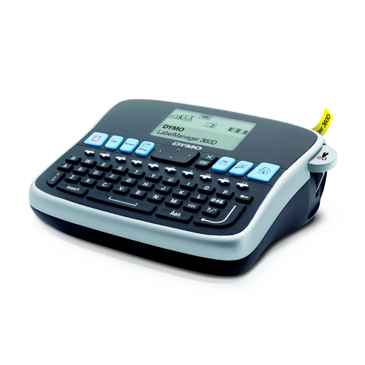“LabelManager™ 360D, som forsynes med strøm fra et genopladeligt litiumionbatteri – den samme teknologi der anvendes til at forsyne mobiltelefoner og bærbare computere med strøm – er let at bruge, og du slipper for besværet med at skifte AA-batterier. Udskriver op til ni stk. af den samme etiket, så du slipper for at genoprette etiketter ved at gemme op til ni etiketter i hukommelsen og med “”gem tekst””-funktionen. Indtast teksten hurtigt og naturligt på den velkendte tastaturtype som til computer, og brug specialtasterne til hurtig adgang til tegnsætningstegn, valuta- og andre specialsymboler. Vælg mellem syv skriftstørrelser, syv teksttypografier, tre skrifttyper og otte rammetyper plus understregning, når du skal skabe brugerdefinerede etiketter, som passer til næsten enhver etiketopgave på kontoret. Én enhed indeholder: LabelManager™ 360D-etiketmaskine, D1-startetiketkassette, sort på hvid, 19 mm x 3M, Genopladeligt litiumionbatteri, Hurtig referenceguide, Opladeradapter, DYMO går meget op i miljøet, og tænker på genbrug. Alle DYMO®-etiketter er fremstillet i Europa. DYMO D1 plastik kassetten er lavet af minimum 80% genanvendt plastik.”