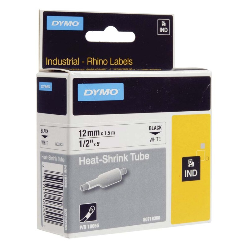 Labeltape DYMO Rhino 12mmx1,5m hvid krympeflex