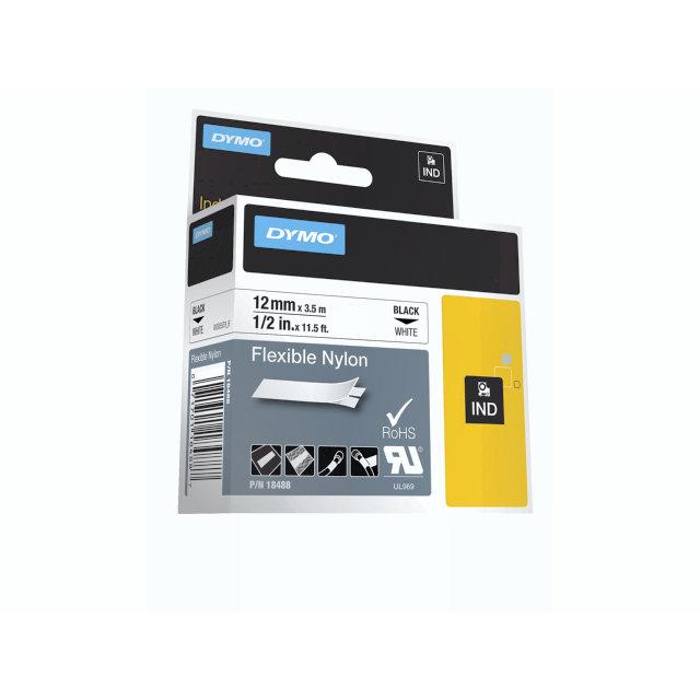 Labeltape DYMO Rhino 12mmx3,5m sort på hvid nylon
