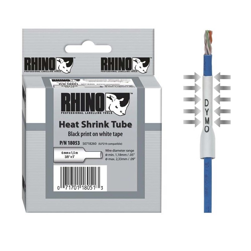 LABELTAPE DYMO RHINO 6MM HVID KRYMPEFLEX 1,5 MTR. 18051