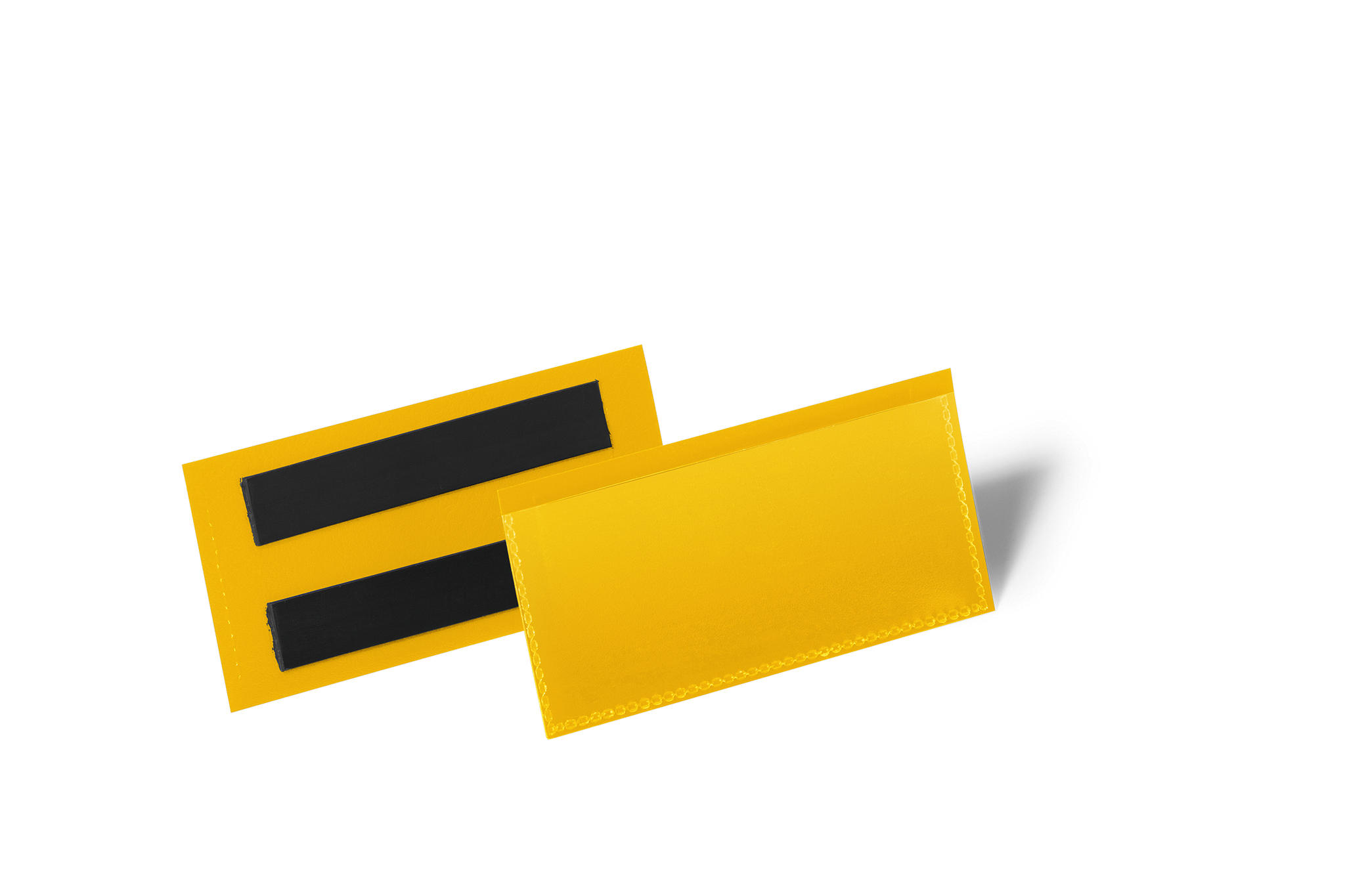Lagerlomme /etiketholder med farvet bagside med magnetiske strips og gennemsigtigt vindue lavet af heavy-duty polypropylen. Brug på metaloverflader, såsom lager hylder og metalbeholdere. Rivefast og velegnet til scannere. Indhold kan udskiftes hurtigt. Gratis skabeloner til etiketter fås fra www.duraprint.dk Indvendige mål: 100 x 38 mm (B x H) Udvendige mål: 113 x53 mm (B x H)