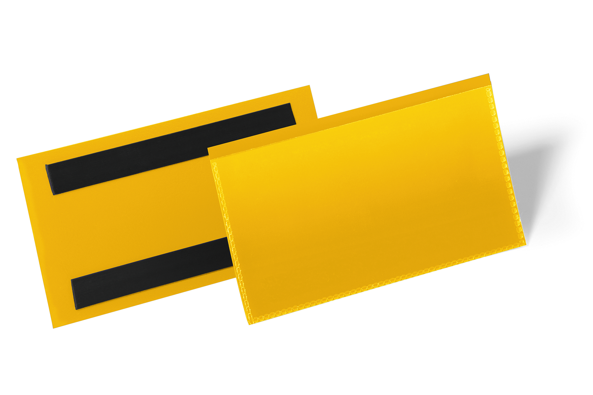 Lagerlomme /etiketholder med farvet bagside med magnetiske strips og gennemsigtigt vindue lavet af heavy-duty polypropylen. Brug på metaloverflader, såsom lager hylder og metalbeholdere. Rivefast og velegnet til scannere. Indhold kan udskiftes hurtigt. Gratis skabeloner til etiketter fås fra www.duraprint.dk Indvendige mål: 150 x 67 mm (B x H) Udvendige mål: 163 x 88 mm (B x H)