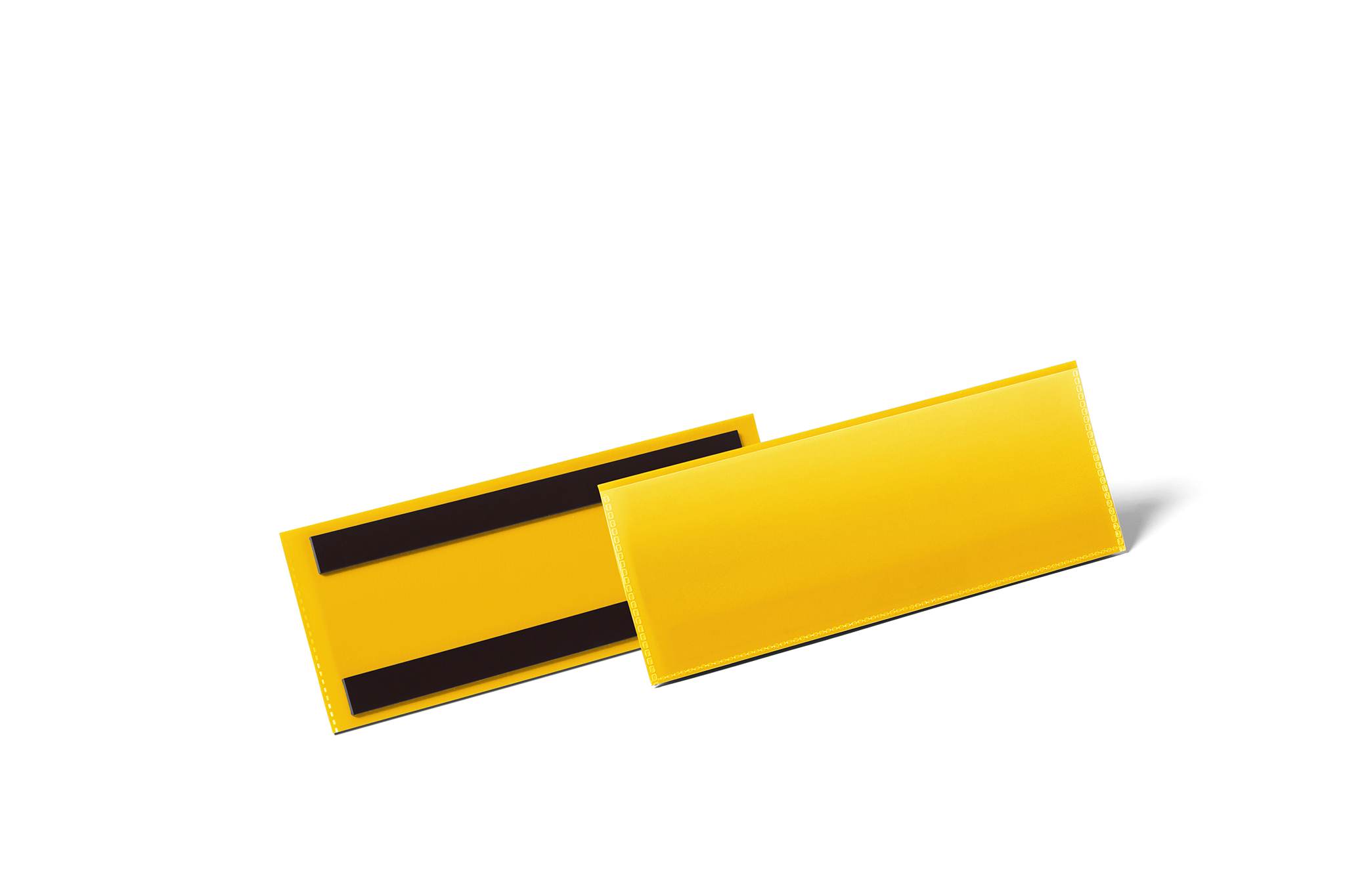 Lagerlomme /etiketholder med farvet bagside med magnetiske strips og gennemsigtigt vindue lavet af heavy-duty polypropylen. Brug på metaloverflader, såsom lager hylder og metalbeholdere. Rivefast og velegnet til scannere. Indhold kan udskiftes hurtigt. Gratis skabeloner til etiketter fås fra www.duraprint.dk. Indvendige mål: 210 x 74 mm (B x H) Udvendige mål: 223 x 81,5 mm (B x H)