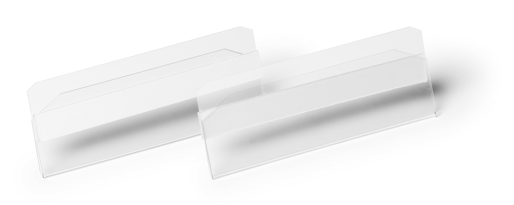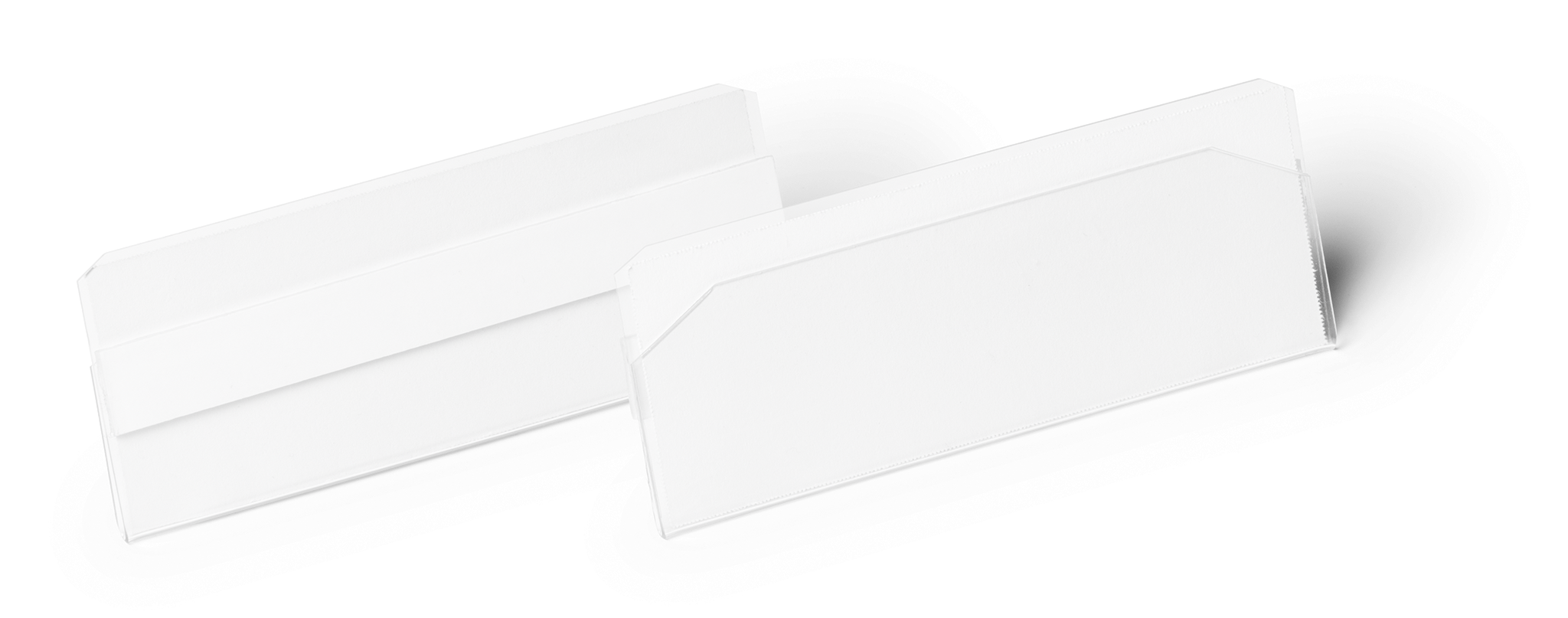 Lagerlomme/etiketholder med magnet hard cover 100x38mmLagerlomme/etiketholder i PET-plast med 2 magnetstriber på bagsiden. Til brug på f.eks. butiks- og lagerreoler i metal.