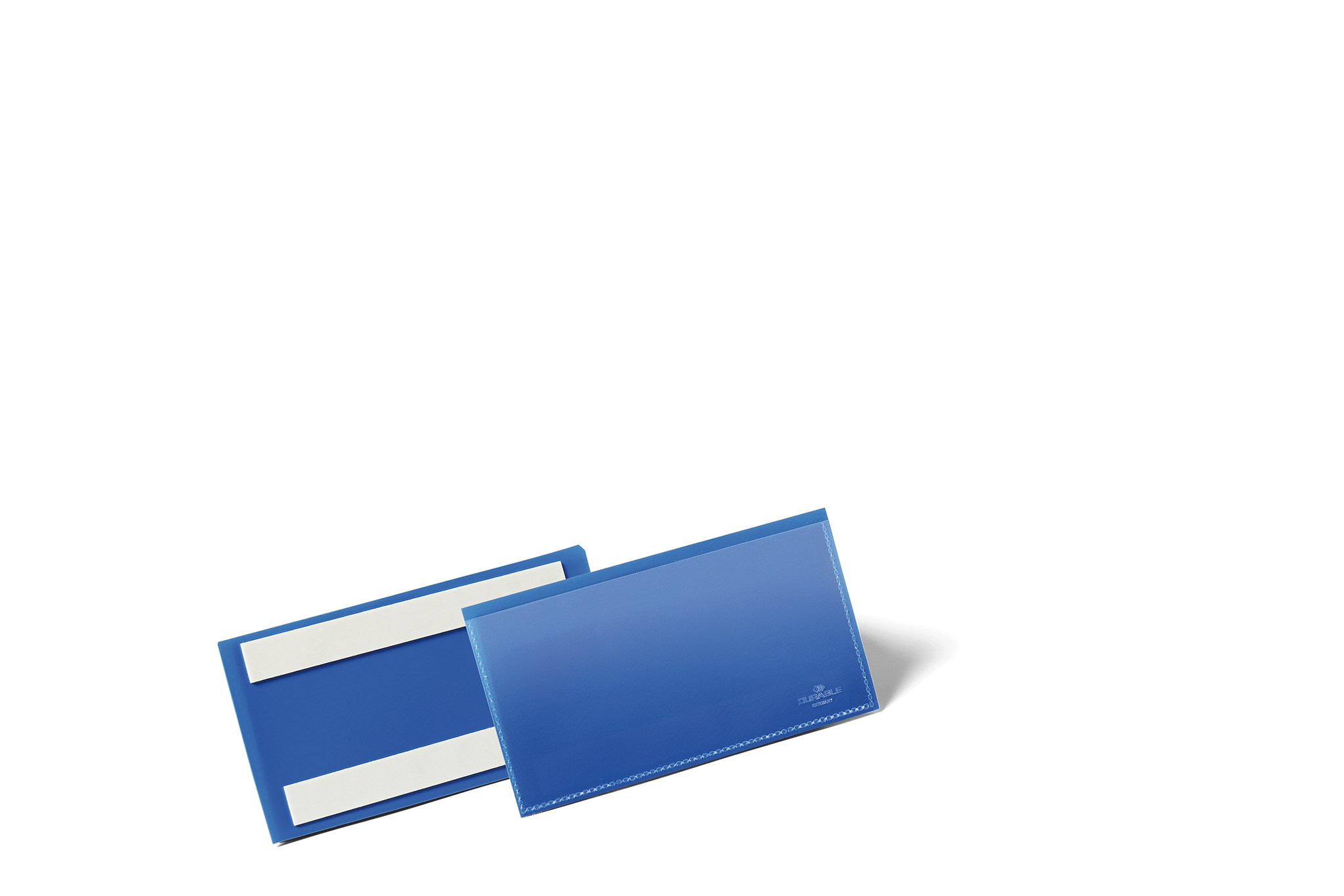 Lagerlomme /etiketholder med farvet bagside med selvklæbende strips og gennemsigtigt vindue lavet af heavy-duty polypropylen. Brug på alle overflader, såsom metal, karton og plast. Rivefast og velegnet til scannere. Indhold kan udskiftes hurtigt. Gratis skabeloner til etiketter fås fra www.duraprint.dk. Indvendige mål: 150 x 67 mm (B x H) Udvendige mål: 163 x 83 mm (B x H)