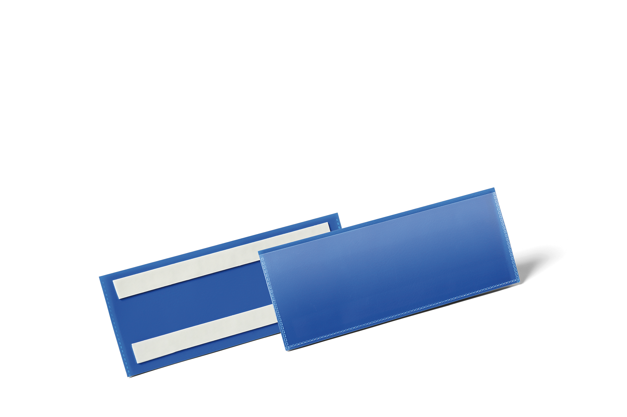 Lagerlomme /etiketholder med farvet bagside med selvklæbende strips og gennemsigtigt vindue lavet af heavy-duty polypropylen. Brug på alle overflader, såsom metal, karton og plast. Rivefast og velegnet til scannere. Indhold kan udskiftes hurtigt. Gratis skabeloner til etiketter fås fra www.duraprint.dk. Indvendige mål: 210 x 74 mm (B x H) Udvendige mål: 223 x 81,5 mm (B x H)