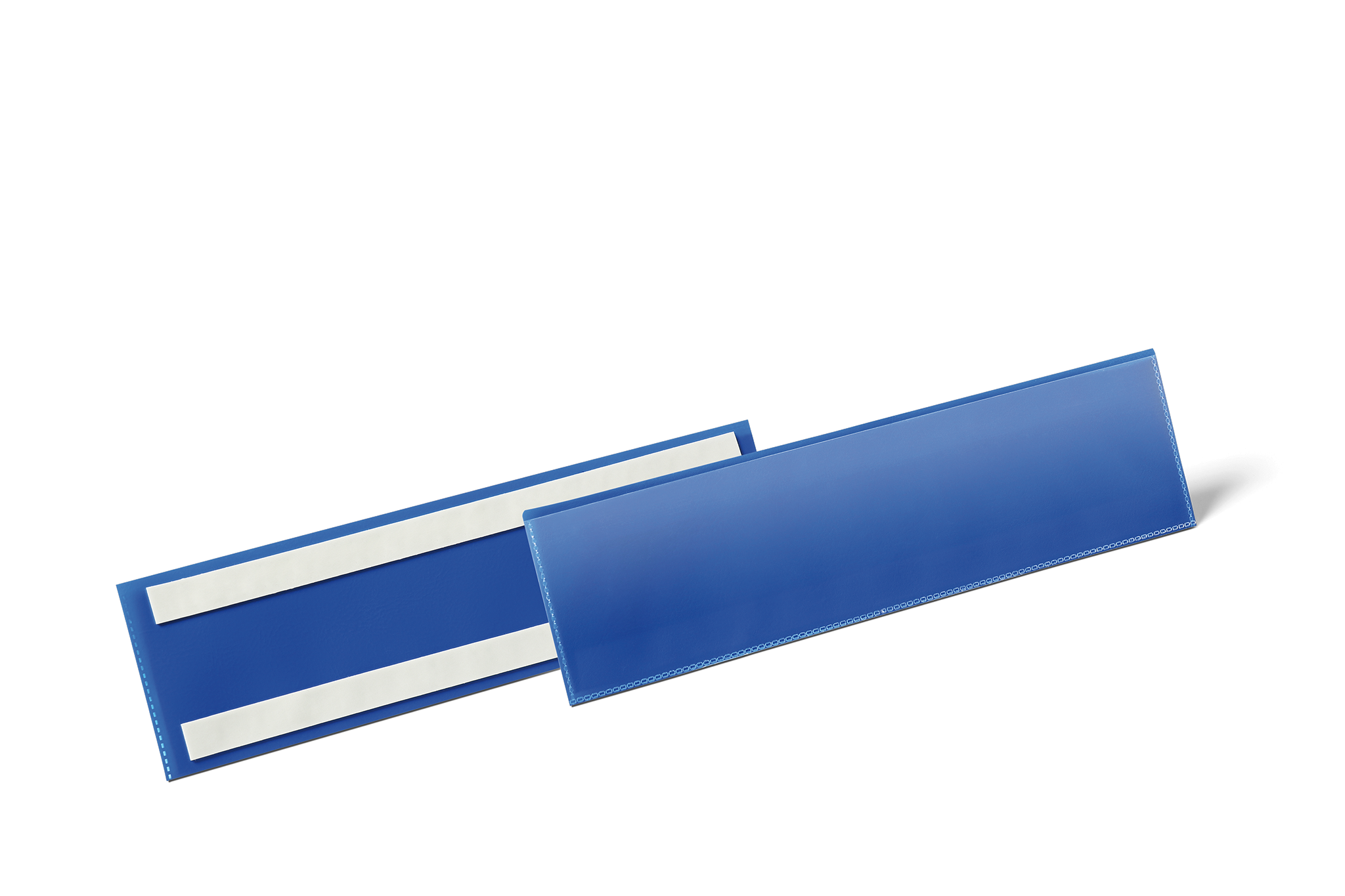 Lagerlomme /etiketholder med farvet bagside med selvklæbende strips og gennemsigtigt vindue lavet af heavy-duty polypropylen. Brug på alle overflader, såsom metal, karton og plast. Rivefast og velegnet til scannere. Indhold kan udskiftes hurtigt. Gratis skabeloner til etiketter fås fra www.duraprint.dk. Indvendige mål: 297 x 74 mm (B x H) Udvendige mål: 311 x 81,5 mm (B x H)