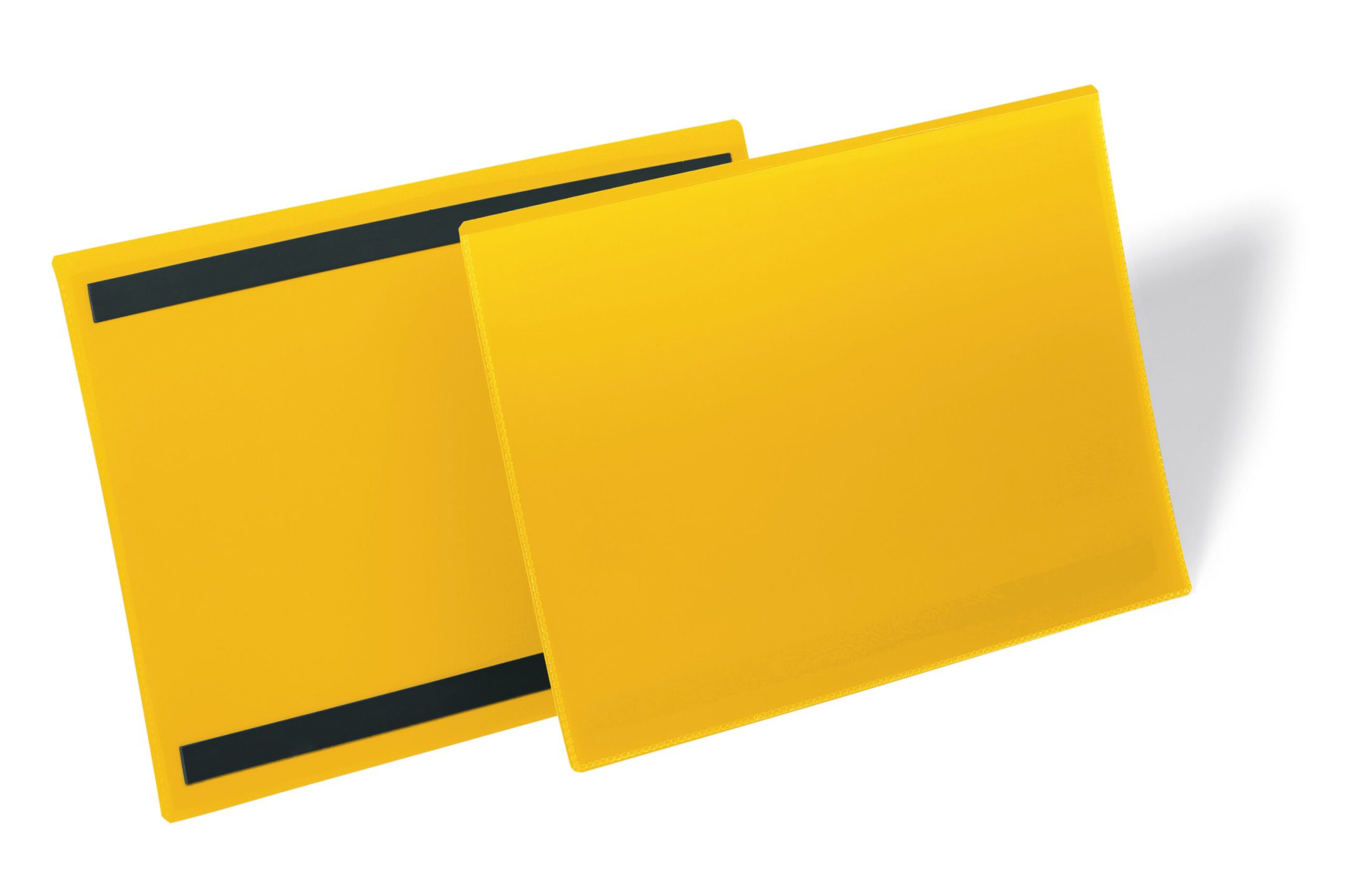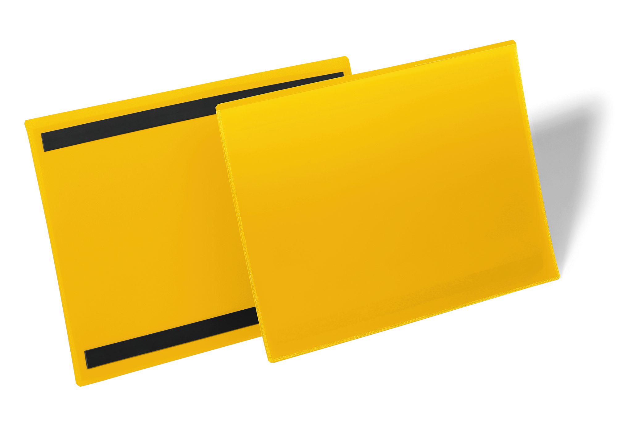 Lagerlomme med farvet bagside med magnetiske strips og gennemsigtigt vindue lavet af heavy-duty polypropylen. Brug på metaloverflader, såsom lager hylder, metal vægge og metalbeholdere. Rivefast og velegnet til scannere. Indhold kan udskiftes hurtigt. Gratis skabeloner til etiketter fås fra www.duraprint.dk Indvendige mål: A4 på langs (B x H) Udvendige mål: 311 x 225 mm (B x H)