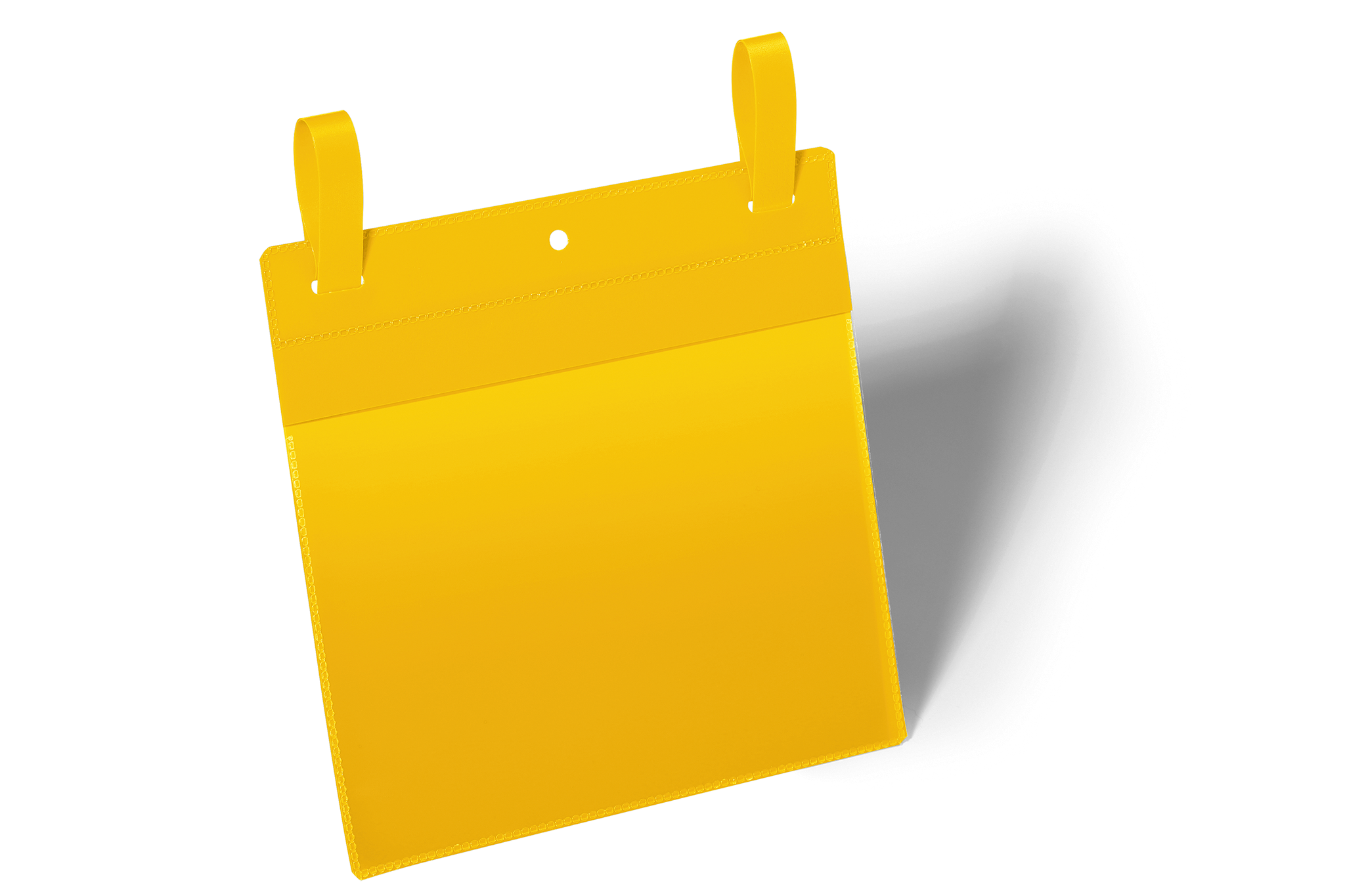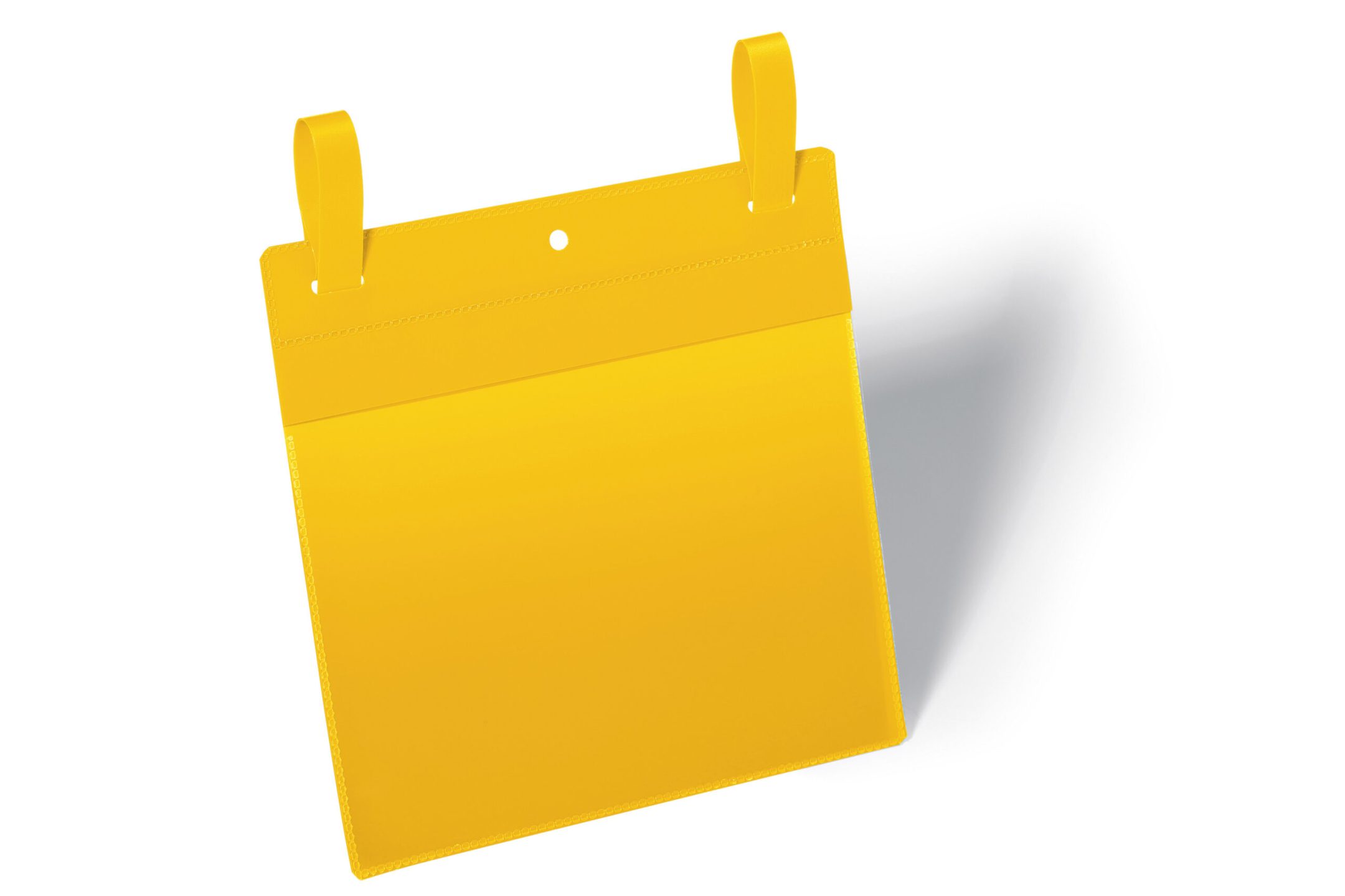 Lagerlomme med pile formede stropper, der fastgøres gennem slidsen i lommen. Ideel til permanent brug på lageret. farvet bagside og gennemsigtigt vindue lavet af heavy-duty polypropylen. Velegnet til udendørs brug takket være åbning med en beskyttende foldefane i toppen der beskytter dokumenter fra støv og fugt. Rivefast og velegnet til scannere. Indhold kan udskiftes hurtigt. Gratis skabeloner til etiketter fås fra www.duraprint.dk Indvendige mål: A5 tvær (B x H) Udvendige mål: 223×380 mm (B x H)