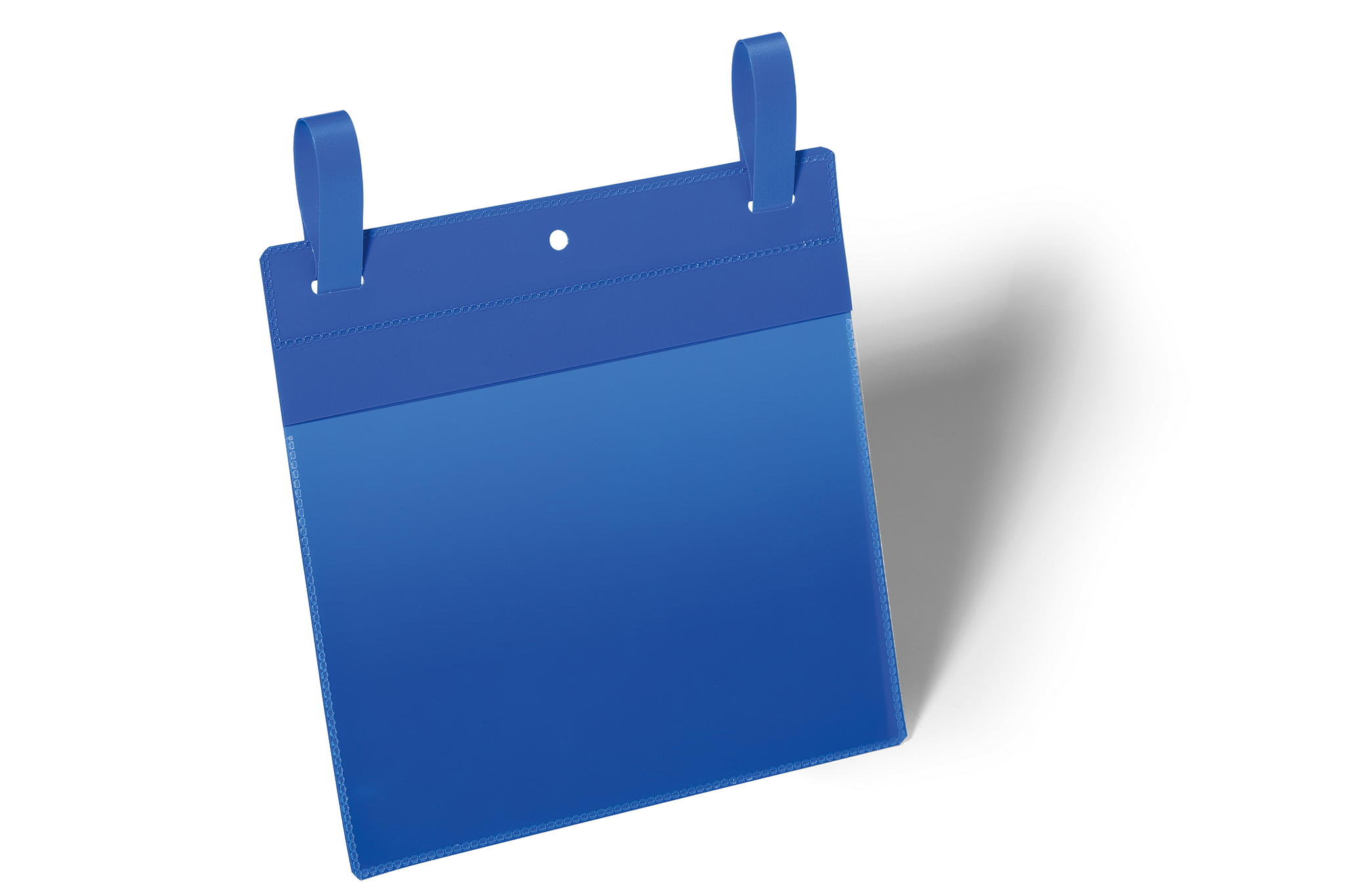 Lagerlomme med pile formede stropper, der fastgøres gennem slidsen i lommen. Ideel til permanent brug på lageret. farvet bagside og gennemsigtigt vindue lavet af heavy-duty polypropylen. Velegnet til udendørs brug takket være åbning med en beskyttende foldefane i toppen der beskytter dokumenter fra støv og fugt. Rivefast og velegnet til scannere. Indhold kan udskiftes hurtigt. Gratis skabeloner til etiketter fås fra www.duraprint.dk Indvendige mål: A5 tvær (B x H) Udvendige mål: 223×380 mm (B x H)