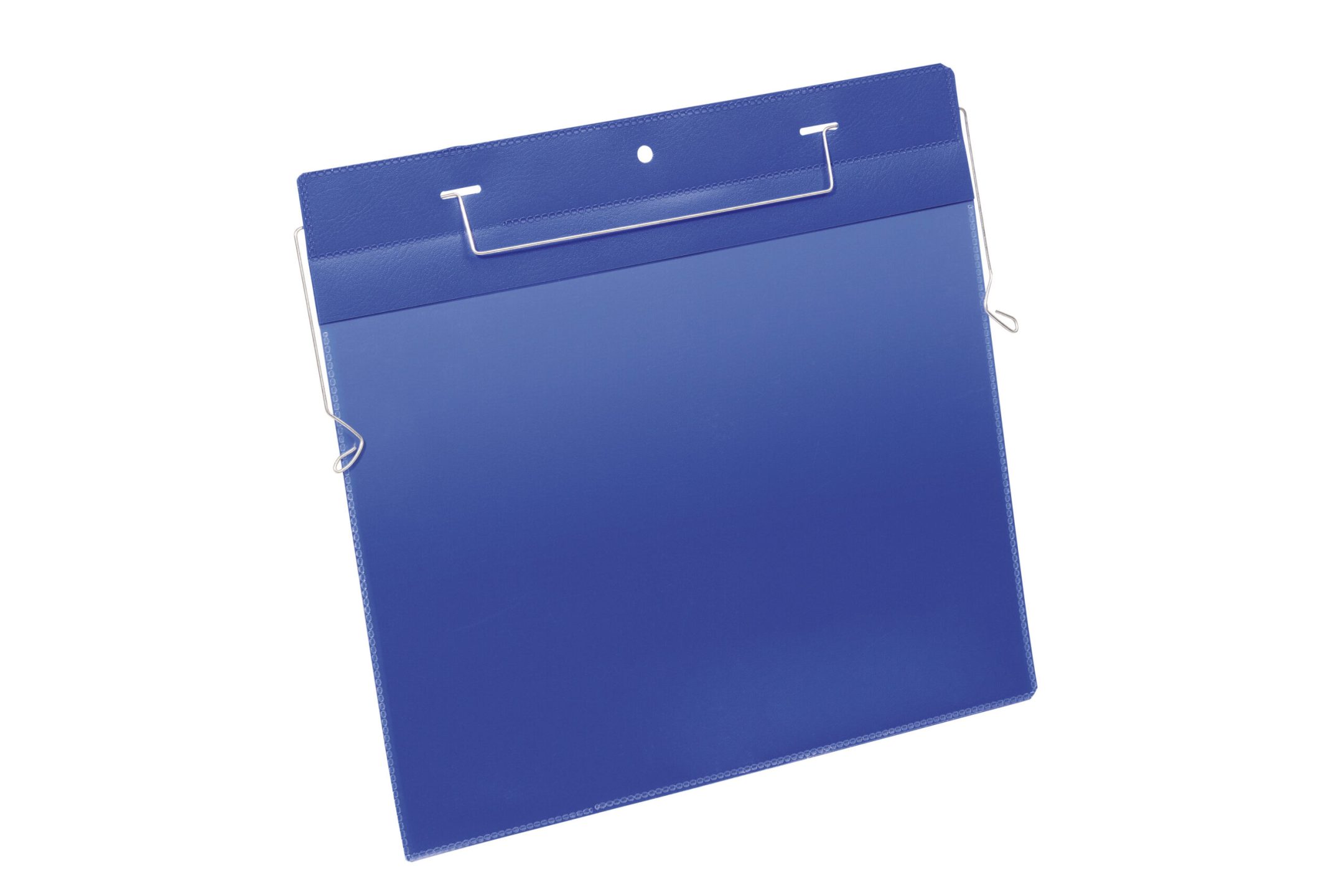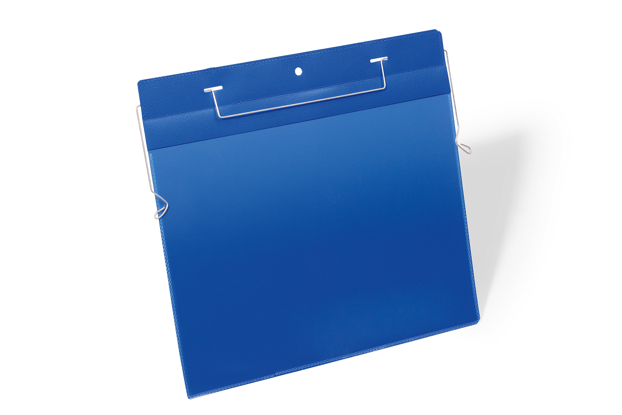Lagerlomme med galvaniseret, bøjelig wirebeslag til nem og sikker fiksering. farvet bagside og gennemsigtigt vindue lavet af heavy-duty polypropylen. Brug på containere, pallerammer og paller bokse. Velegnet til udendørs brug takket være åbning med en beskyttende foldefane i toppen der beskytter dokumenter fra støv og fugt. Rivefast og velegnet til scannere. Indhold kan udskiftes hurtigt. Gratis skabeloner til etiketter fås fra www.duraprint.dk Indvendige mål: A4 tvær (B x H) Udvendige mål: 311 x 280 mm (B x H)