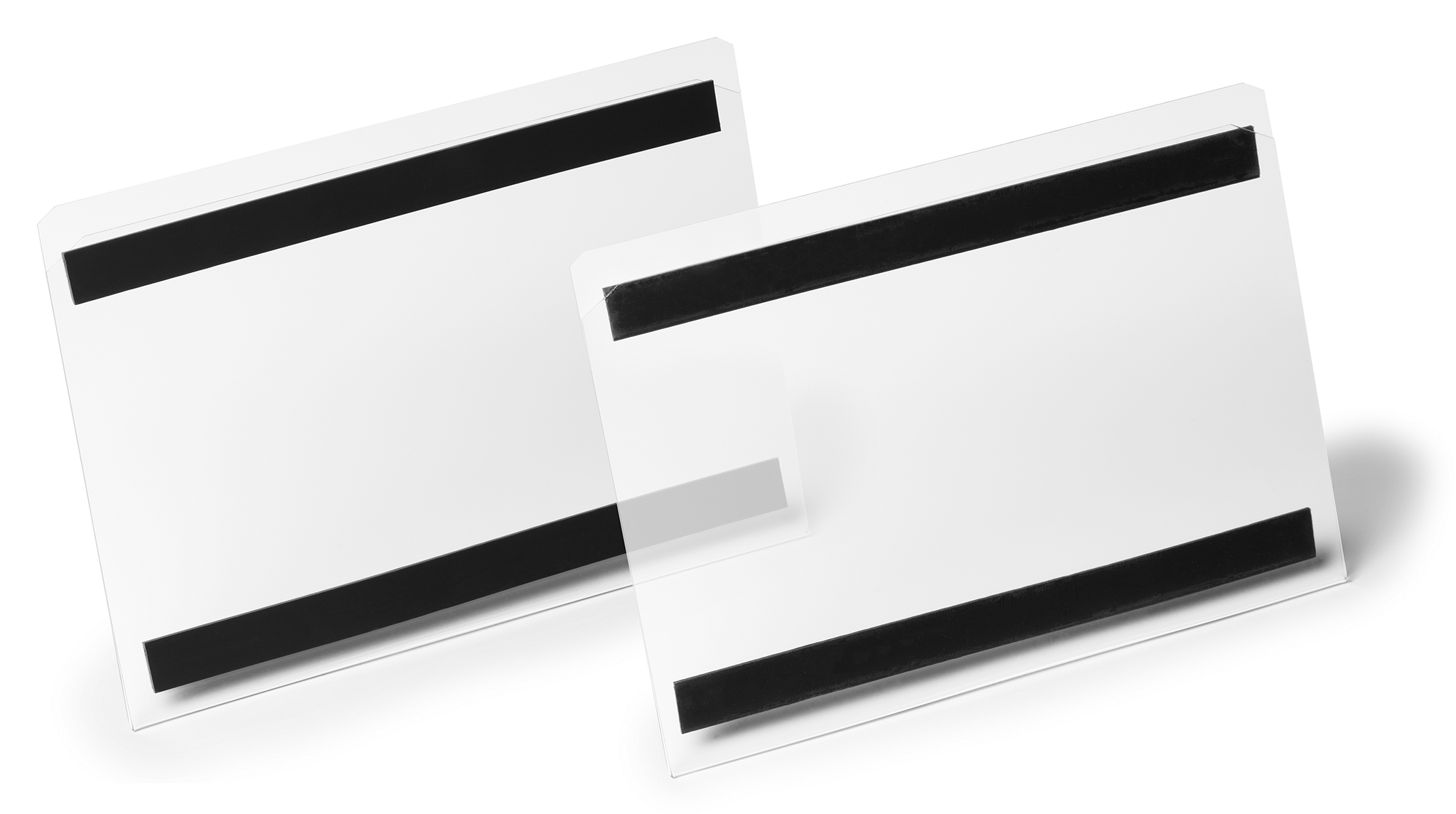 Klar og tydelig mærkning af butiks- og lagerreoler, skabe, døre, containere i metal forbedrer og strømliner arbejdsprocessen på lager- og produktionsfaciliteter. De transparente, magnetiske etiketholdere af kraftig PET-plast kan læses med en scanner. Lagerlommerne er nemme at udskifte, da lommerne er åbne i toppen og på begge sider og desuden har skrå hjørner, så det er nemt at få adgang til etiketten. To magnetstrips på bagsiden sikrer, at lommen sidder fast på plads. Hver etiketholder er dækket af en gennemsigtig plastfilm, der beskytter mod ridser under transport og opbevaring. Beskyttelsesfilmen fjernes nemt, når produktet er klar til brug. Der findes en gratis skabelon til etiketten på www.duraprint.dk. Indvendige mål: A5L (210×148 mm B x H) Ydre mål: 213 x 153 mm (B x H) Tilbehør: Etiketter på A4-ark, art. nr. 485502