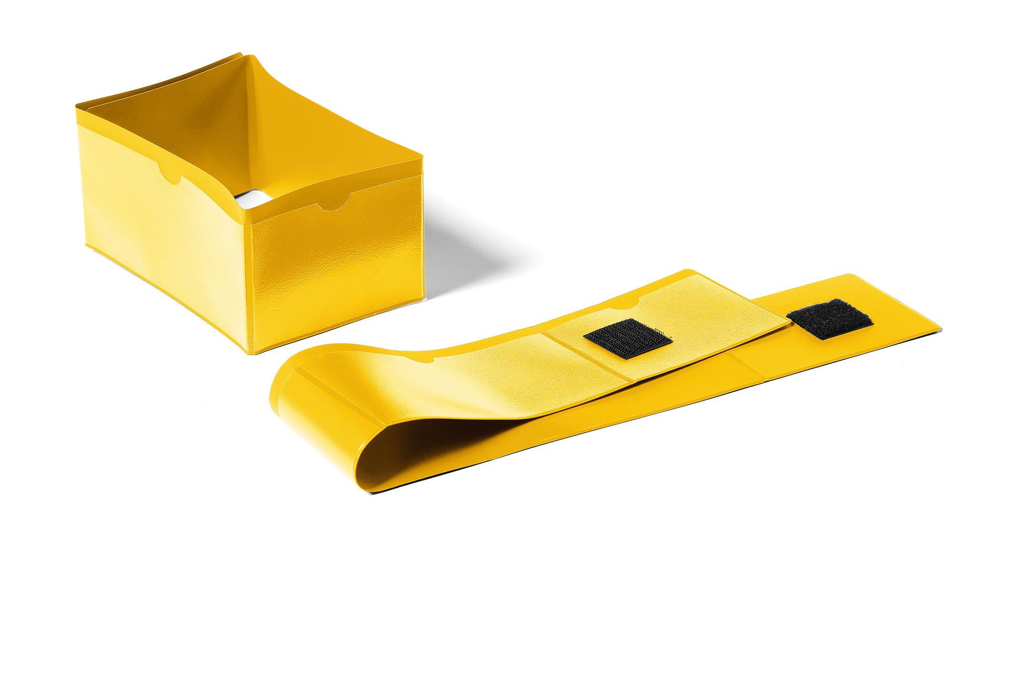 Lagerlomme til mærkning af pallerfod. Fastsættes rundt om pallefoden og lukkes med velcrobånd. Alle fire sider har ikke-reflekterende lommer til indstiksetiketter.Gjort af slidstærkt plast, og med et tommerfingergreb, gør det nemt at udskifte etiketten. Vellegnet til brug med scannere. Download af skabelon til indstiksetiketter er tilgængeligt på www.duraprint.dk 1 pk m/50 lommer Indermål: 140 x 65/90 x 65 mm (W x H) Ydermål: 596 x 75 x 0,8 mm (W x H x D)
