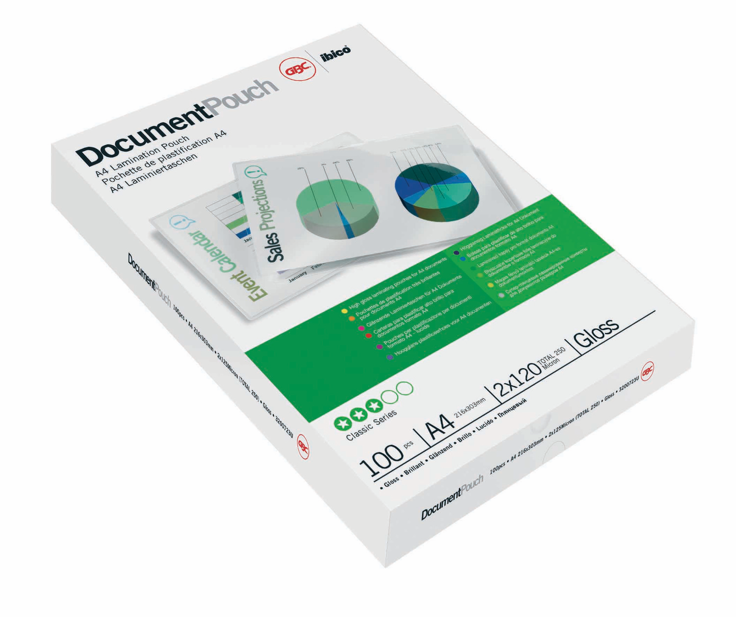 En tilbehørsserie lavet til perfekt personliggørelse af dine laminerede dokumenter. GBC lamineringslomme A4 80 micron skinnende (100)