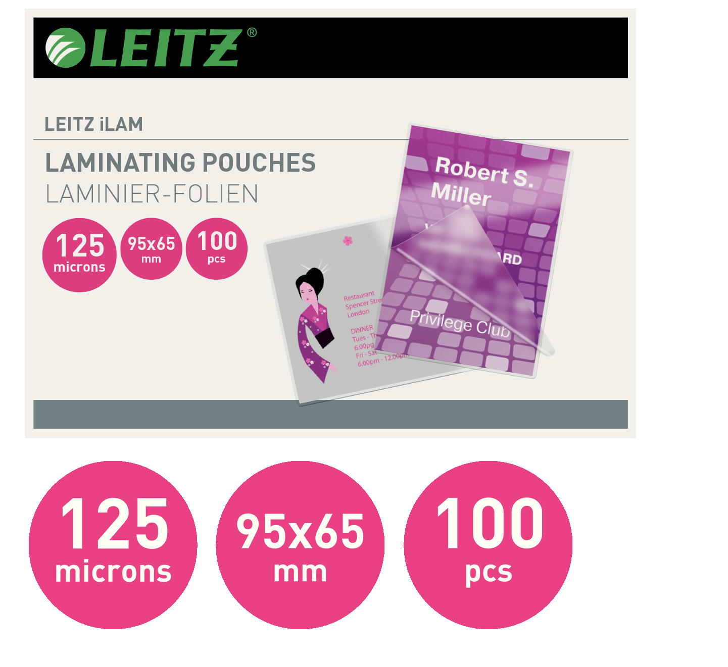 Lille lamineringslomme. Velegnet til medlemskort, kuffertmærker og meget andet.