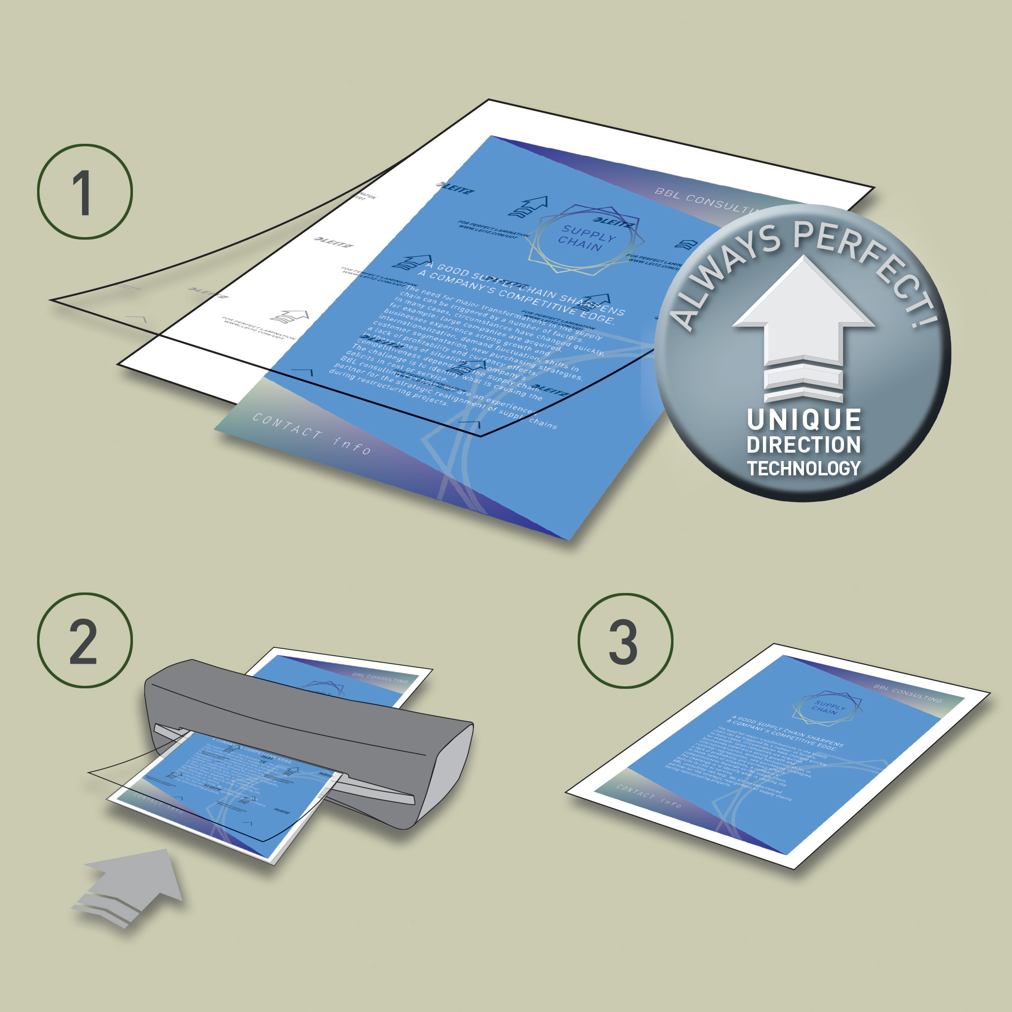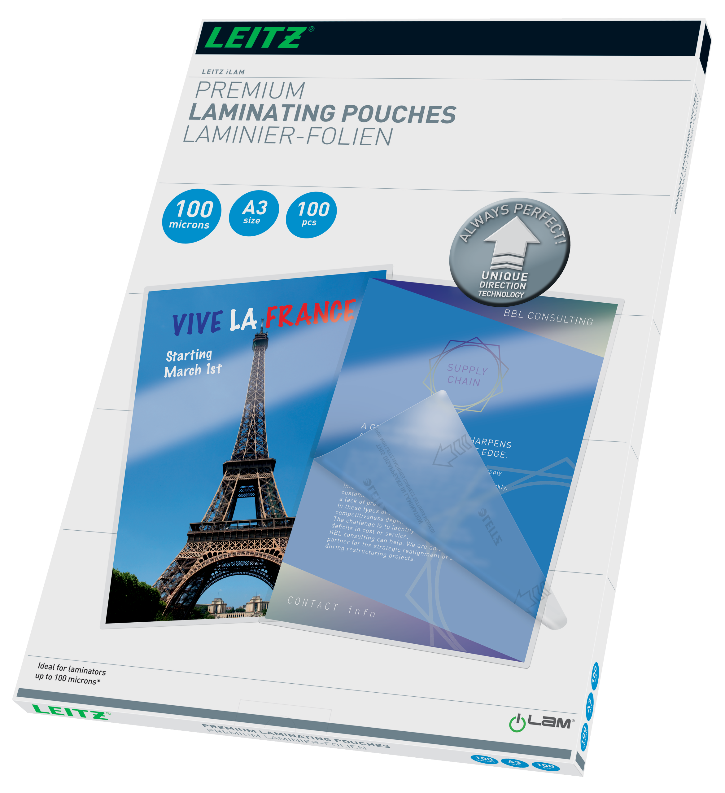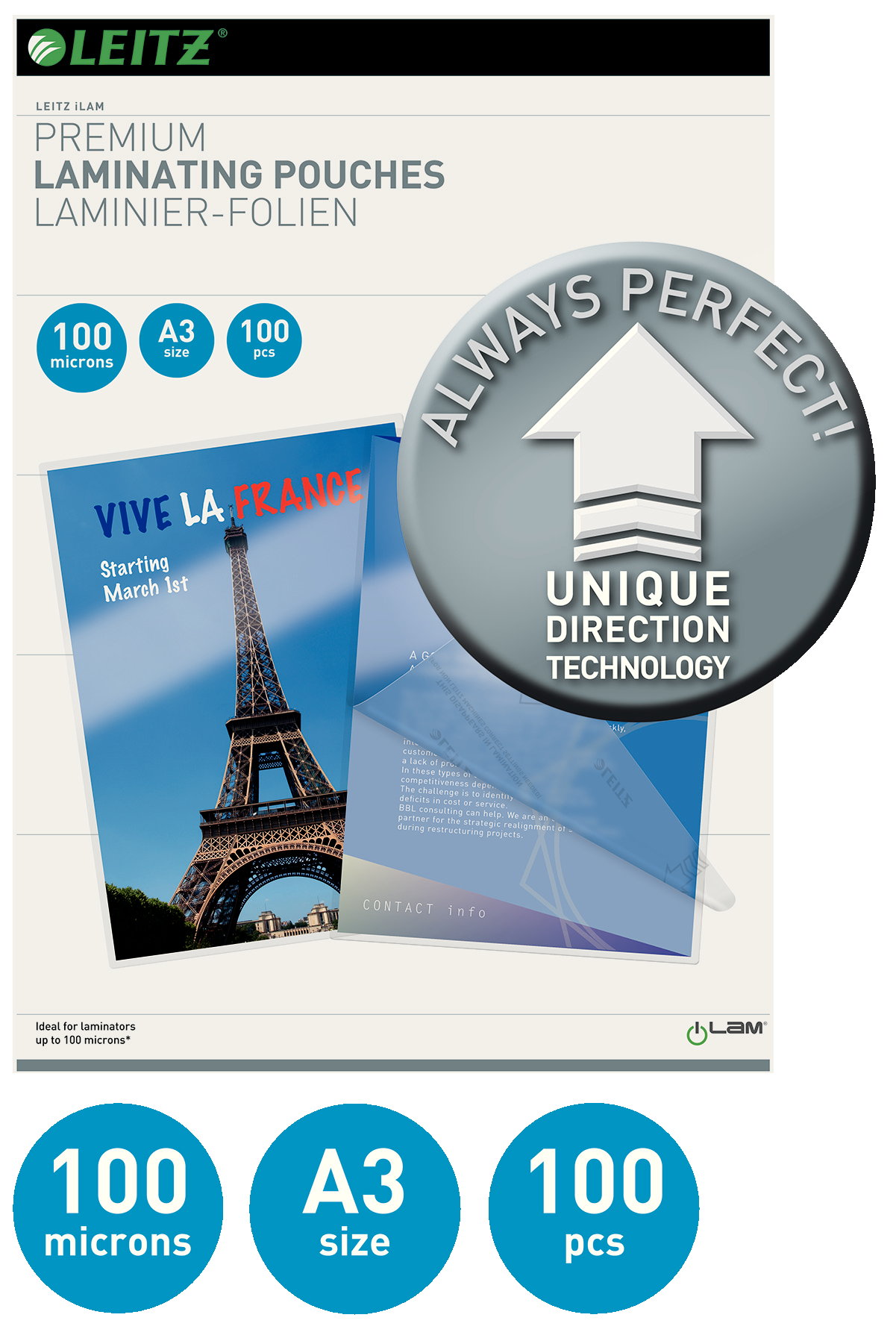 Unique Direction Technology for nem problemfri laminering. Højglans. 100 lommer.