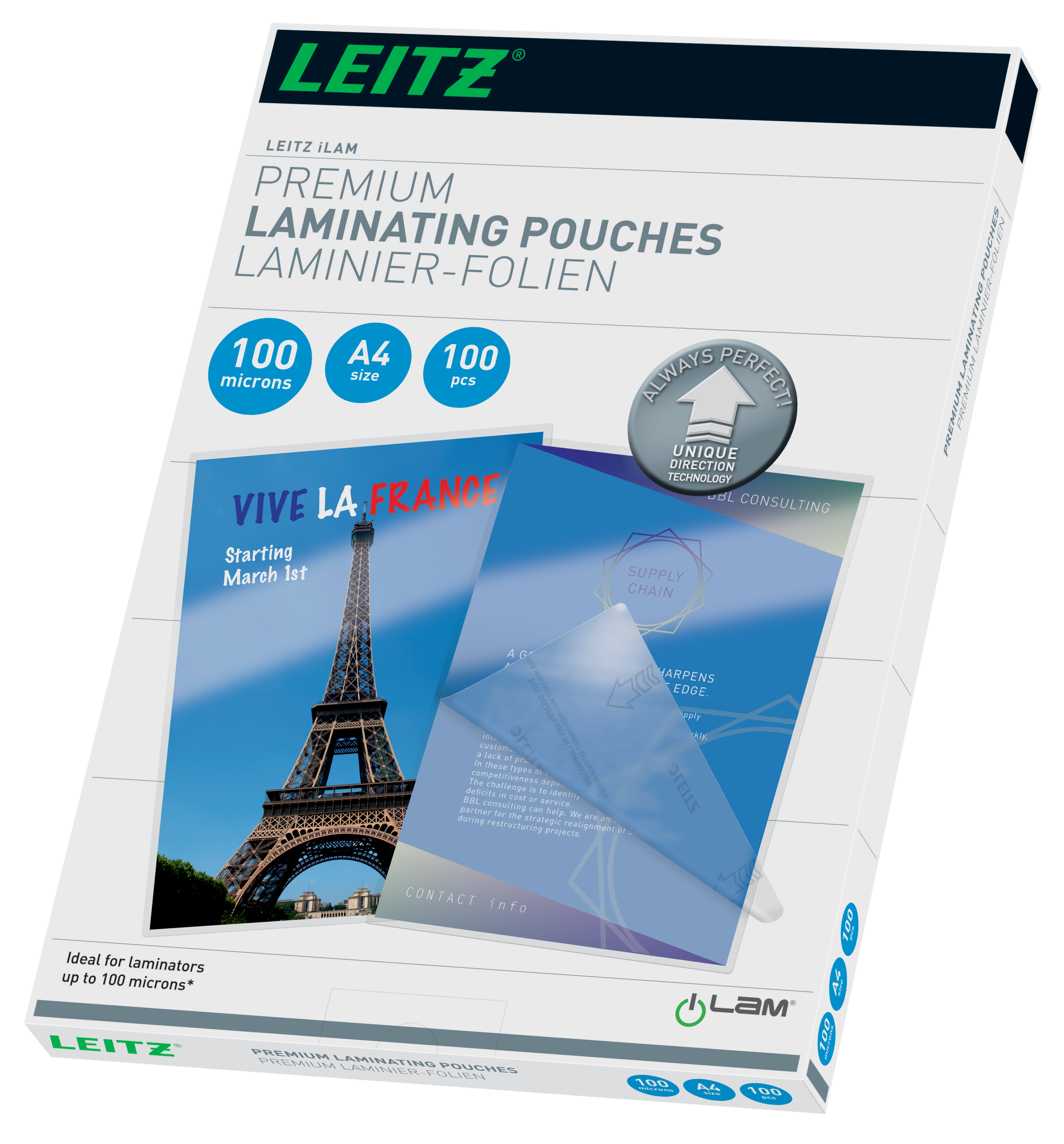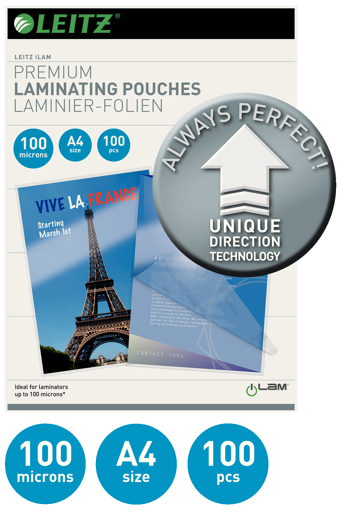 Unique Direction Technology for nem problemfri laminering. Højglans. 100 lommer.