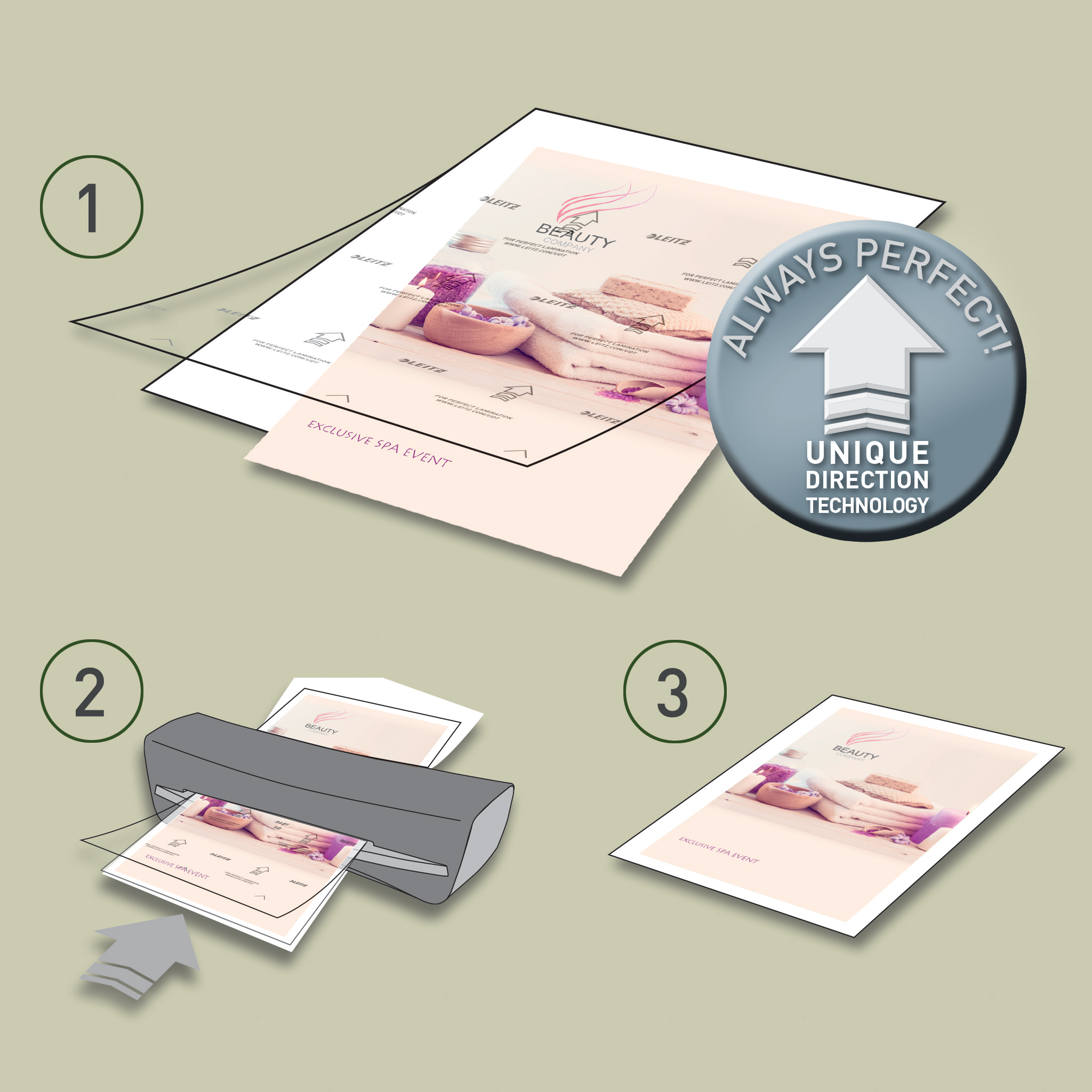 Unique Direction Technology for nem problemfri laminering. Højglans. 100 lommer.