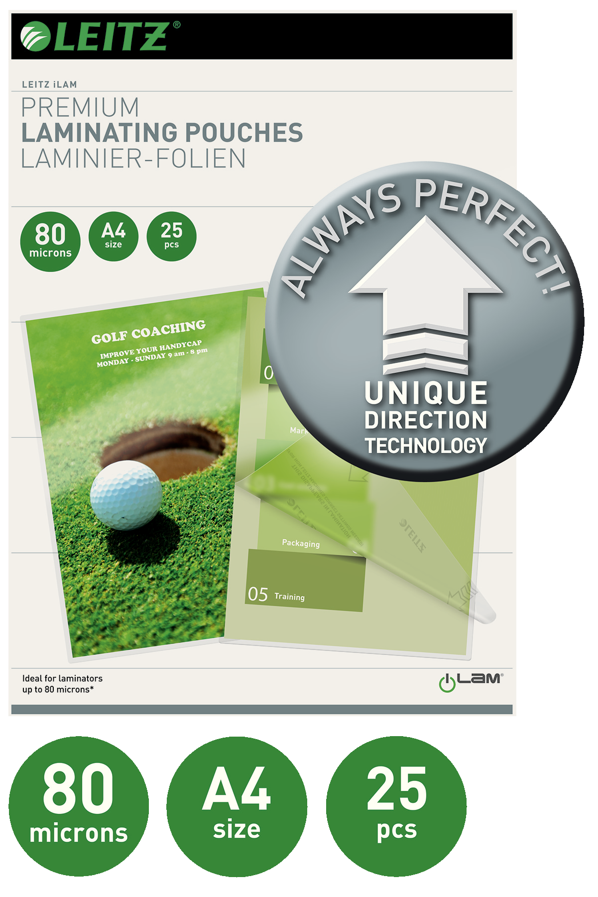 Unique Direction Technology for nem problemfri laminering. Højglans. 25 lommer.