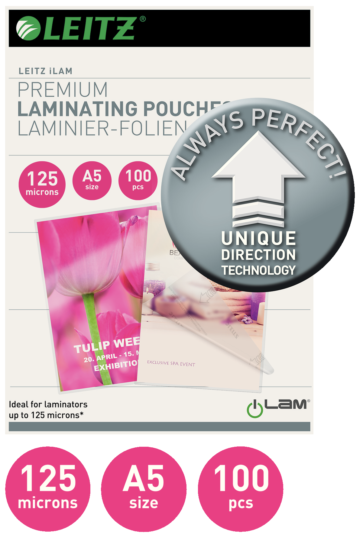 Unique Direction Technology for nem problemfri laminering. Højglans. 100 lommer.