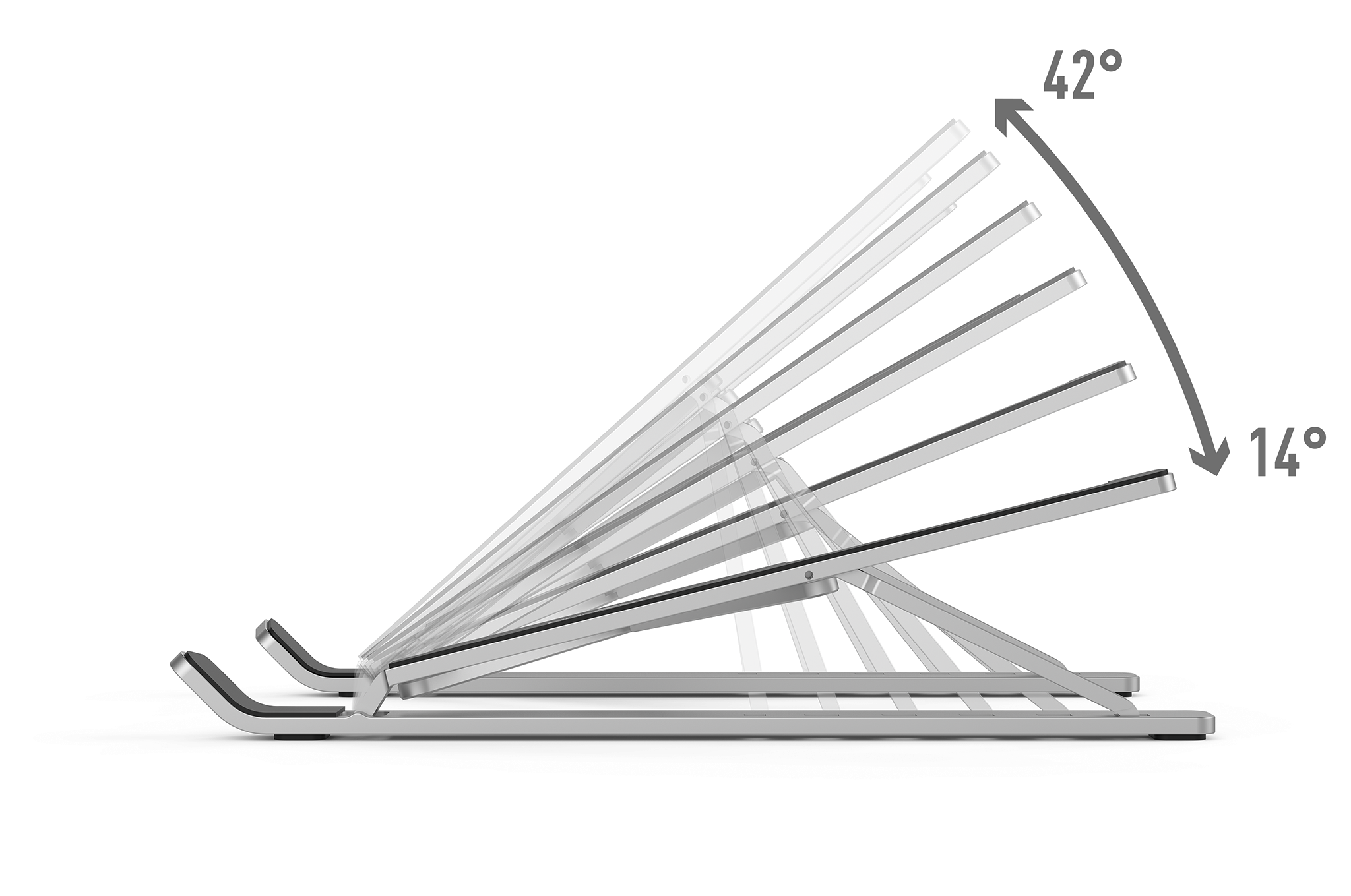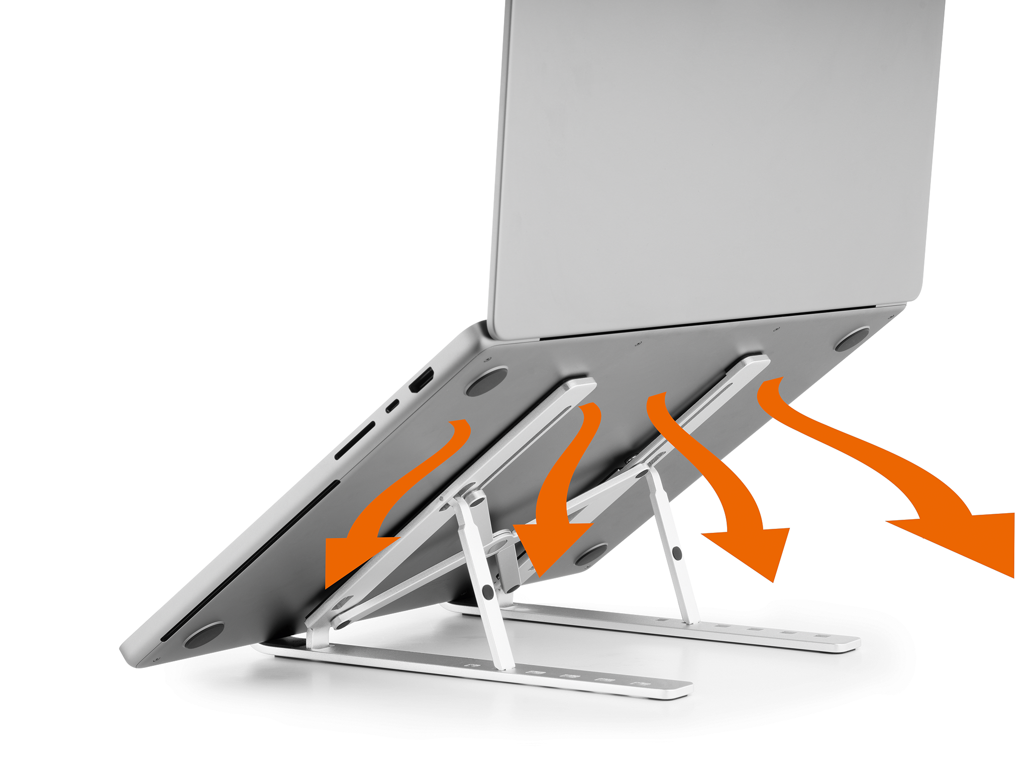 Laptop stand fold6-trins justerbar stander til bærbare computere på op til 5 kg. Foldbar, nem at bære og fylder meget lidt, når den ikke er i brug.