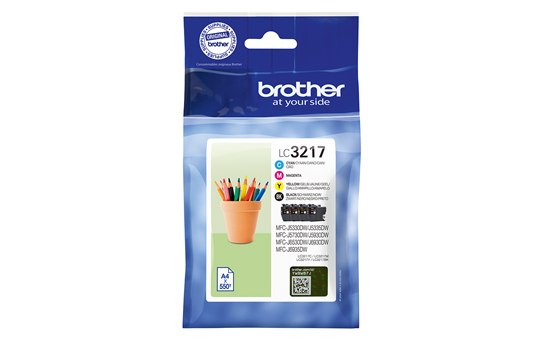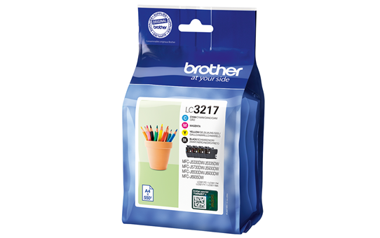 Brother LC-3217. Forsyningstype: Multipakke, Farve blæk sidekapacitet: 550 Sider, Udskrivning af farver: Sort, Blå, Magenta, Gul
