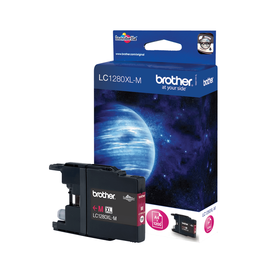 Brother LC1280XLM. Forsyningstype: Enkelt pakke, Farve blæk sidekapacitet: 1200 Sider, Udskrivning af farver: Magenta, Antal pr. pakke: 1 stk
