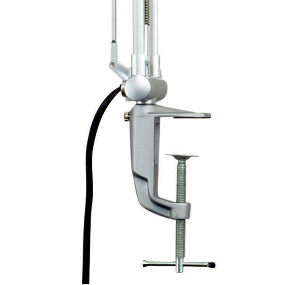 LED skrivebordslampe med fod eller klemme fra MAUL Denne skrivebordslampe er perfekt til at belyse selv de større skriveborde på kontoret. Den lange, dobbelte arm spreder lyset ud over en stor radius. Lampen udsender et neutralt lys, der er behageligt for øjnene. Med den nyeste LED-teknologi sikrer lampen en høj energieffektivitet og et minimalt strømforbrug. 1.178 Lumen, 9kWh/1000h. Lampen er fremstillet i antracitgrå plastik med en justerbar arm i aluminium. Lampehovedet kan roteres, så du kan få den perfekte belysning til dit arbejde. Leveres med en klemme, der gør det muligt at montere lampen direkte på skrivebordets kant, som et praktisk og pladsbesparende alternativ til den runde lampefod. Alle kontorlamper fra MAUL er designet til at kunne repareres og genanvendes fremfor at blive kasseret. Derfor har alle lamperne udskiftelige lyskilder og betjeningsenheder. Emballagen er genanvendelig. Dette produkt har 2 års garanti. Højde 49, 8 cm. Lampehoved Ø 14,2 cm. Nederste og øverste arm 41 cm. hver. Bund 22,8 x 22,8 cm. Klemme bredde 0 5,5 cm. Ledning 1,8 m.