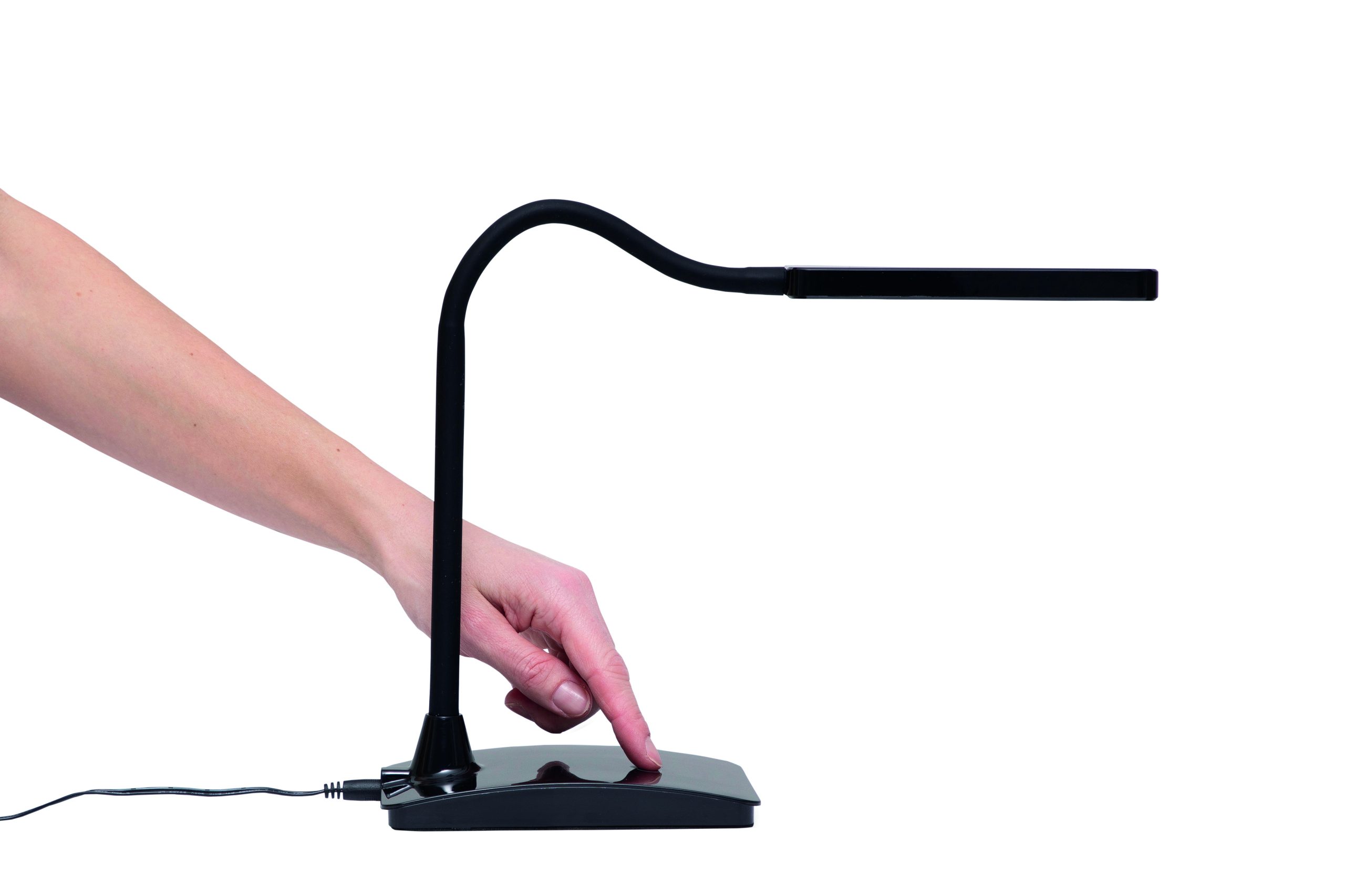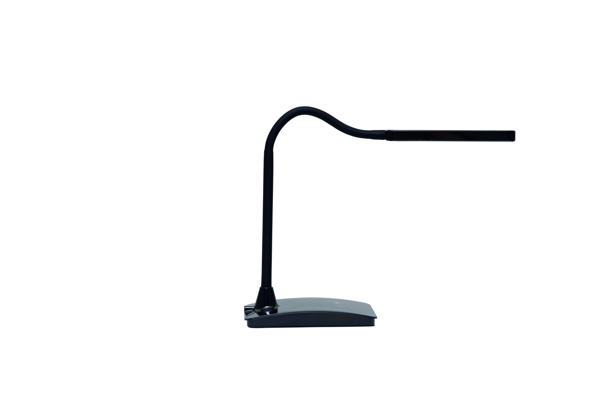 Sort LED Touch bordlampe fra MAUL Denne kompakte bordlampe er ideel til det lille skrivebord. Lampen har 3 lysindstillinger: Neutral, koldt og varmt lys (3.000 Kelvin til 6.500 Kelvin). Skift nemt mellem indstillingerne med et enkelt tryk på knapperne, som er placeret på lampens fod. Med den nyeste LED-teknologi sikrer lampen en høj energieffektivitet og et minimalt strømforbrug. 616 Lumen, 5kWh/1000h. Kontorlampen er fremstillet i blank, sort plast med en mat sort gummibelagt metalarm. De øverste ca. 20 cm. er fleksibel, hvilket gør det muligt at justere lysretningen, så du kan få den perfekte belysning til dit arbejde. Alle kontorlamper fra MAUL er designet til at kunne repareres og genanvendes fremfor at blive kasseret. Derfor har alle lamperne udskiftelige lyskilder og betjeningsenheder. Emballagen er genanvendelig. Dette produkt har 2 års garanti. Højde 37,5 cm. Hoved 16 x 6 cm. Bund 16,5 x 10,6 cm. Ledning 1,7 m.