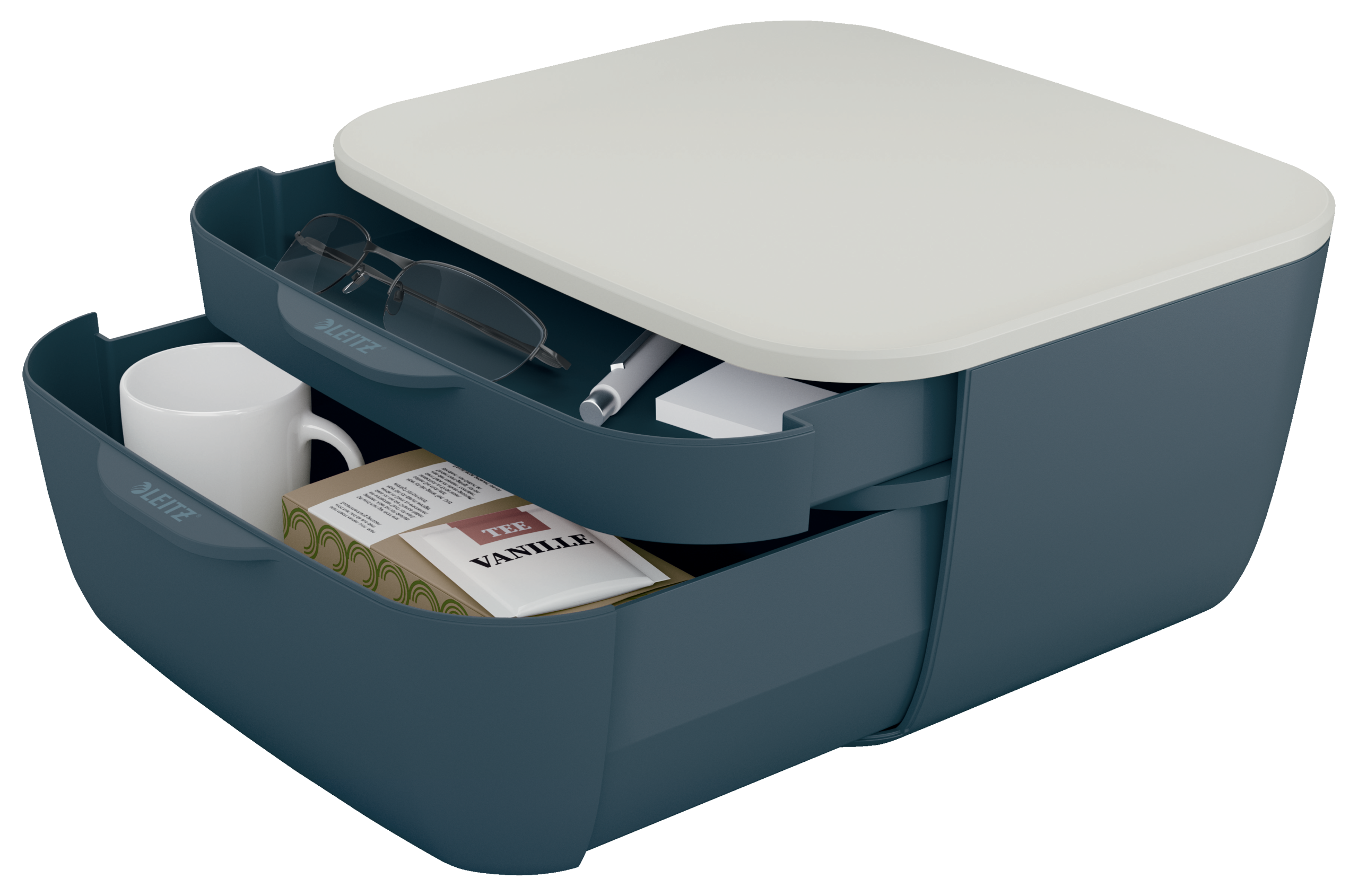 Føl dig hjemme med Cosy serien fra Leitz uanset hvor din arbejdsdag tager dig hen. Med det minimalistiske design og de indbydende matte farver giver du stil og farve til dit arbejdsområde. Cosy skuffekabinettet er ideelt til at opbevare alle dine dag til dag fornødenheder som penne, kabler, notesbøger. Dette premium kvalitets skuffekabinet er et perfekt tillæg til hjemmet eller kontoret for at sikre, at du forbliver afslappet og organiseret hele dagen.