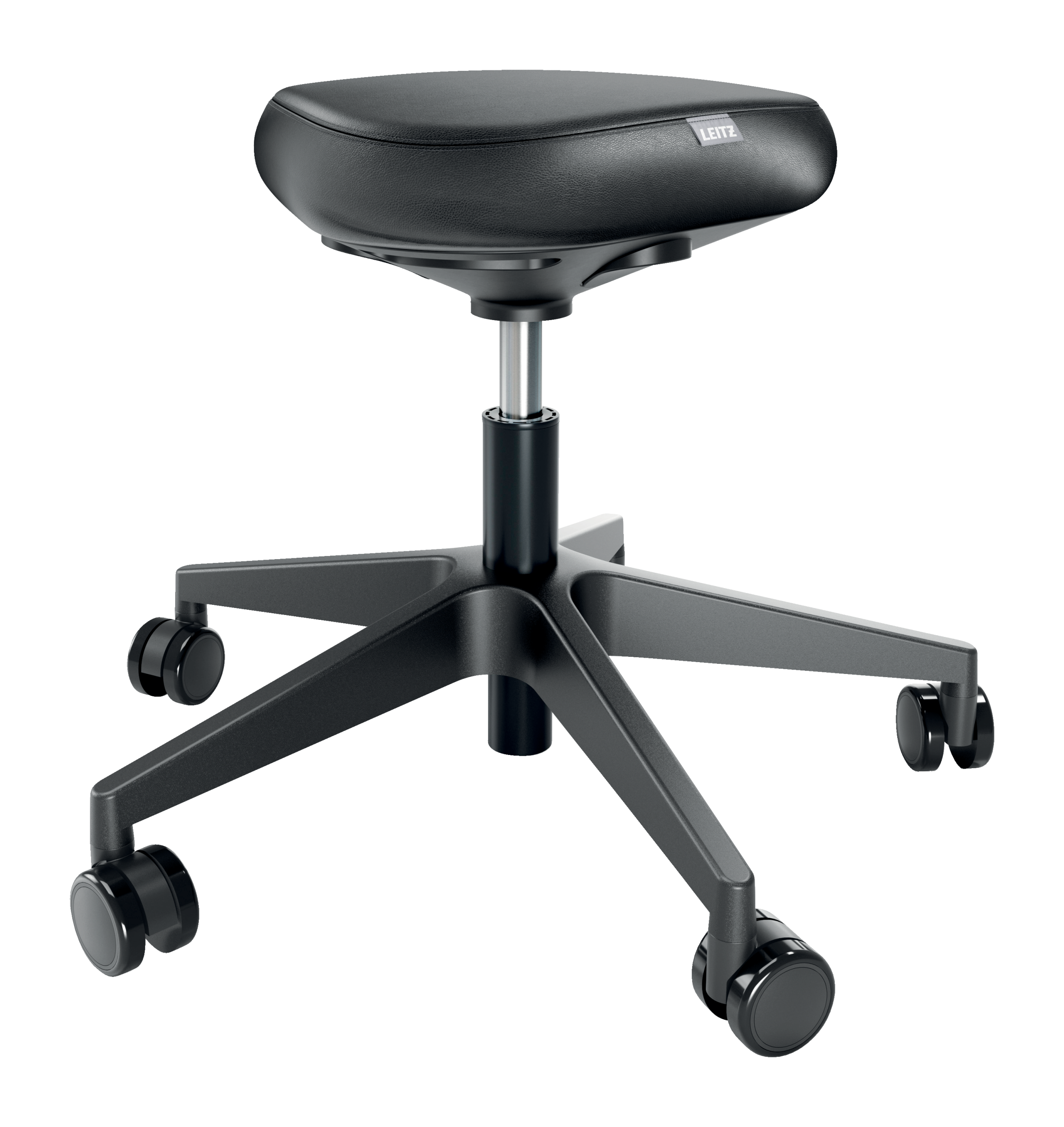 Leitz Ergo arbejdsstol hjælper dig med at være komfortabel og produktiv gennem hele din arbejdsdag! Den har et trekantet sæde, der former sig efter din krop som en sadel og hjælper med at fordele din vægt jævnt for øget komfort. Sædet er lavet af et unikt 9 cm tykt Dual Density Foam (DDF). Det betyder, at skummet har to lag: et fast indre lag for stærk støtte og et blødere ydre lag for komfort. Denne kombination hjælper dig med at bevare en god kropsholdning og reducerer presset på dine ben, hvilket gør det lettere og mere behageligt at sidde i længere tid uden ubehag. Det ergonomiske sæde får dig til at sidde mere oprejst og hjælper med at forbedre kropsholdningen og reducere gener. Denne ergonomiske arbejdsstol med justerbar højde er testet og certificeret af Institute for Health and Ergonomics (IGR) og er skabt til at holde dig komfortabel, uanset om du er hjemme, på kontoret, i frisørsalonen, på værkstedet eller i studiet. Let at rengøre sæde i kunstlæder med overflade der kan tørres af. Ideelt til travle miljøer, hvor renhed er afgørende. Den har 5 letrullende hjul, der passer til alle gulvtyper, og er designet til at kunne dreje 360°, så den er nem at flytte rundt ved skrivebordet eller fra rum til rum. Hjulene øger modstanden, når stolen ikke er i brug, hvilket øger sikkerheden og forhindrer utilsigtede bevægelser. Med en bredere base på 60 cm giver disse GS- og TÜV-certificerede (sikkerhedstestet) taburetter øget stabilitet og forhindrer, at de vælter. Juster stolen til din perfekte højde (46 – 59 cm) med en af de 3 lettilgængelige trykknapper under skamlen. Det kompakte, pladsbesparende design gør det nemt at opbevare den under et skrivebord. Denne moderne designede taburet med hjul er ideel til at øge komforten og maksimere produktiviteten og passer perfekt ind i mange miljøer. Vores mission er at levere løsninger, der gør det muligt for den enkelte at trives på og uden for arbejdet, og som fremmer positiv mental sundhed og fysisk velbefindende. Kombiner med andre Leitz Ergo-produkter for at tilpasse din fleksible og individuelle sid, stå & bevæg dig-arbejdsstation. Hold dig aktiv, føl dig inspireret, og nyd komforten på arbejdet og i andre sammenhænge – hvor menneskecentreret design møder førsteklasses kvalitet og præcis tysk teknik. HAV DET GODT med Leitz.